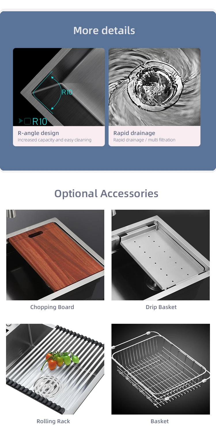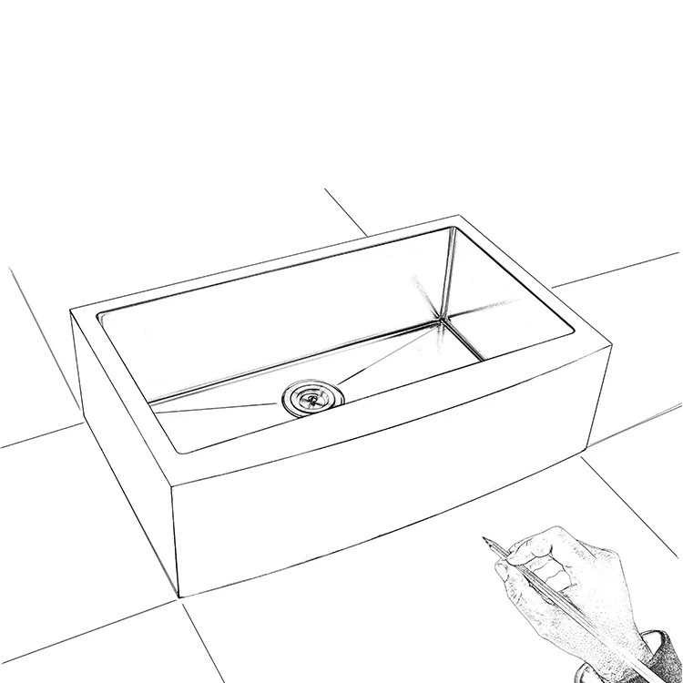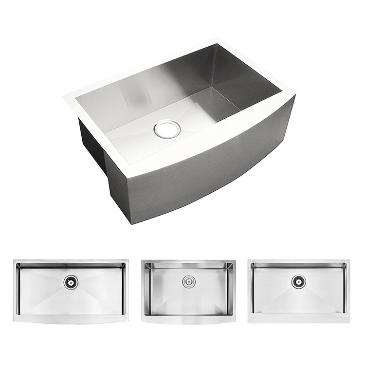 Home Kitchen & Fixed Installation Closet Kitchen Materials Kitchen Sinks Zhongshan Ideal Building Material Co., Ltd. HSA875625/845325/916223/765125 American standard size simple custom handmade sus304 stainless steel farmhouse kitchen apron front sink
