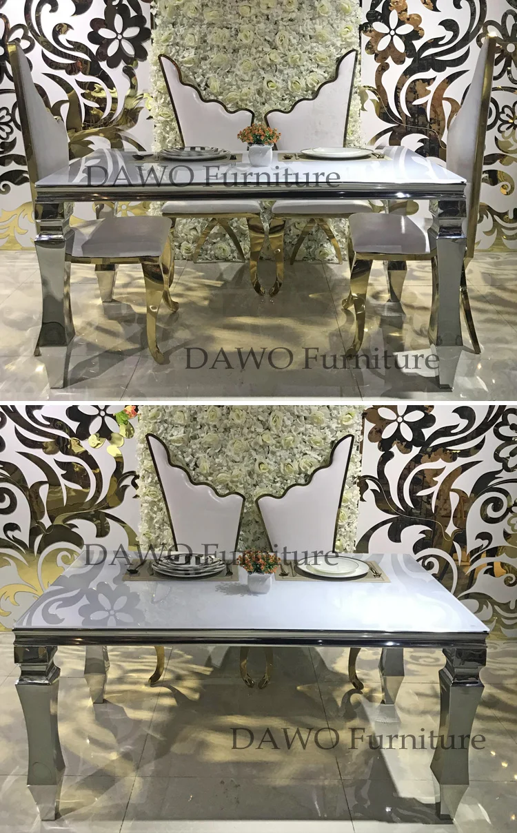 Latest golden stainless steel frame MDF top luxury dining table set for restaurant