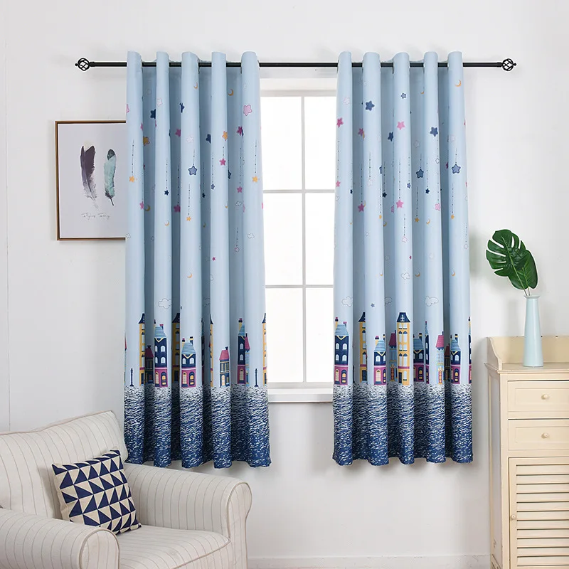 New Printed Short Curtains, Online Store Ready Made Bedding Room Curtain Cloth , Grommet Blackout Curtains