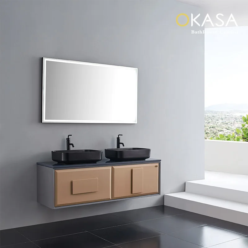 Home Bathroom Products,Sinks Bathroom Cabinets Foshan Praisewood Furniture Co., Ltd S-7625 Floor mounted double sink bathroom vanity mirror storage vanity