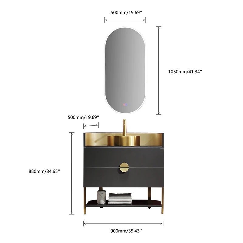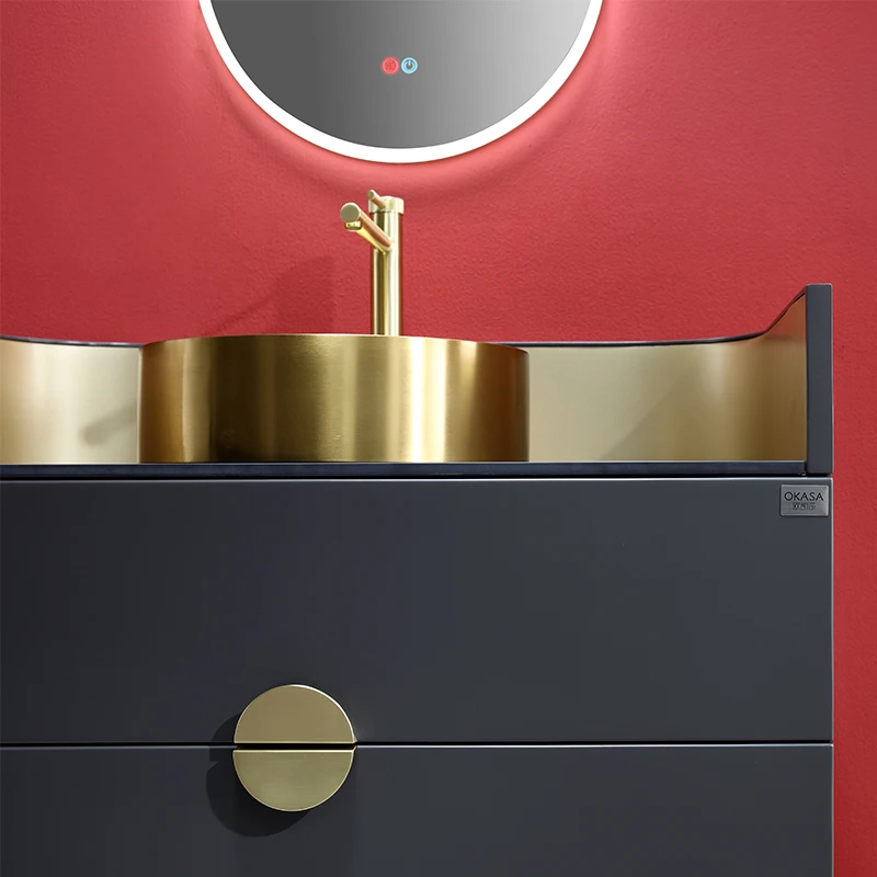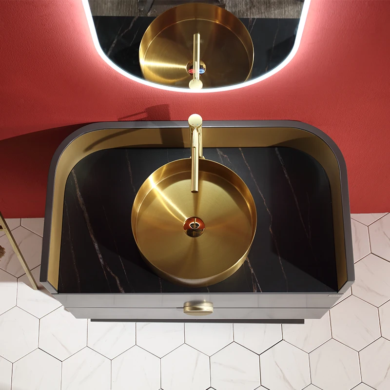 7520 Modern Design Smart Mirror Gold Bathroom Vanity Luxury Storage Furniture