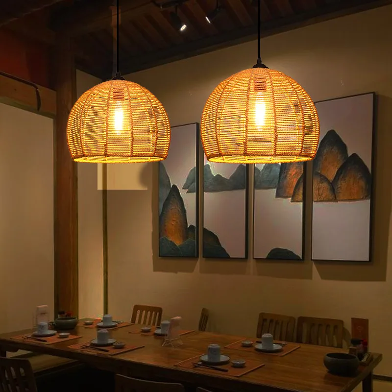 Pendant Lights Modern Rustic Hemp Rope Hanging Lamp for Living Room