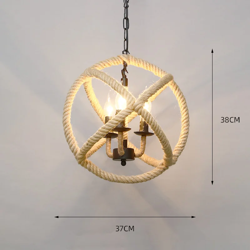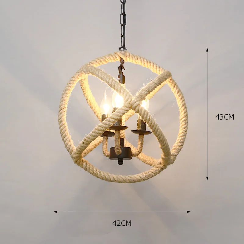 Industrial Retro Style Metal Hemp Rope Globe Cage Round Pendant Lamp Fixture