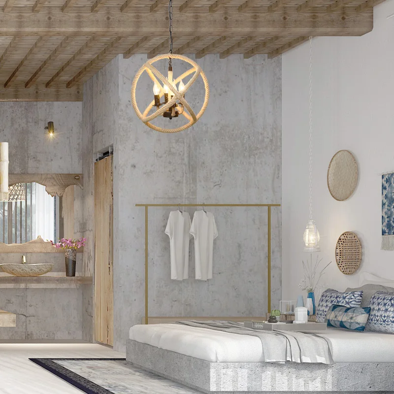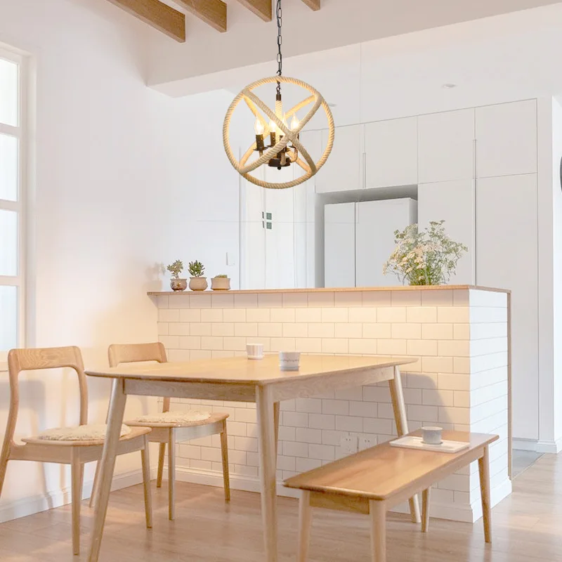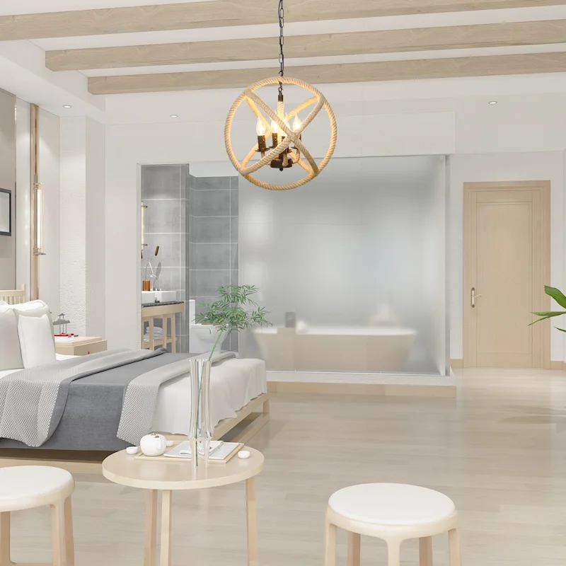 Home Lighting, Artwork & Interior Decoration Accessories Indoor Customized Lighting Pendant Lights Zhongshan Zuohui Lighting Co., Ltd. Industrial Retro Style Metal Hemp Rope Globe Cage Round Pendant Lamp Fixture