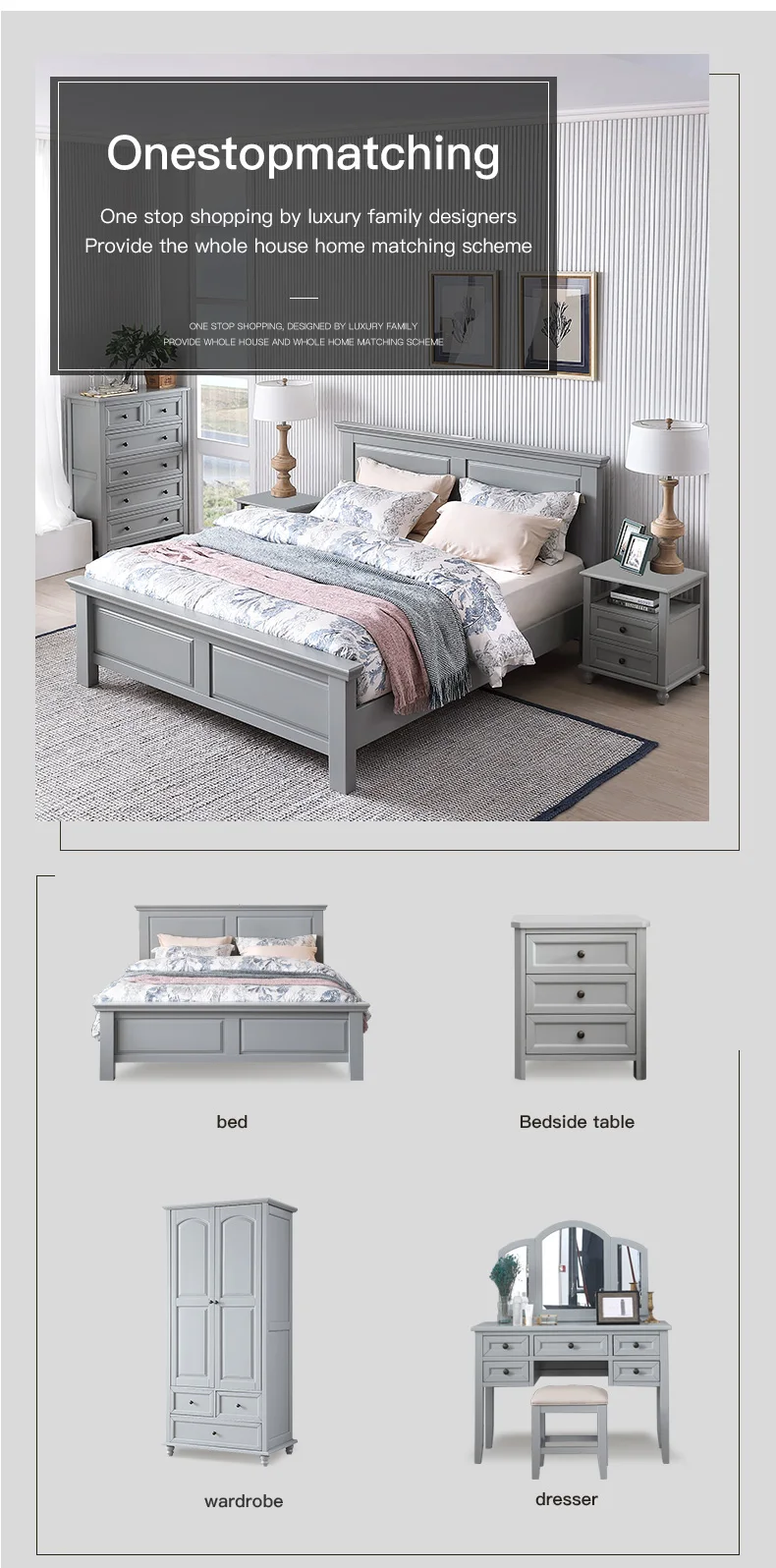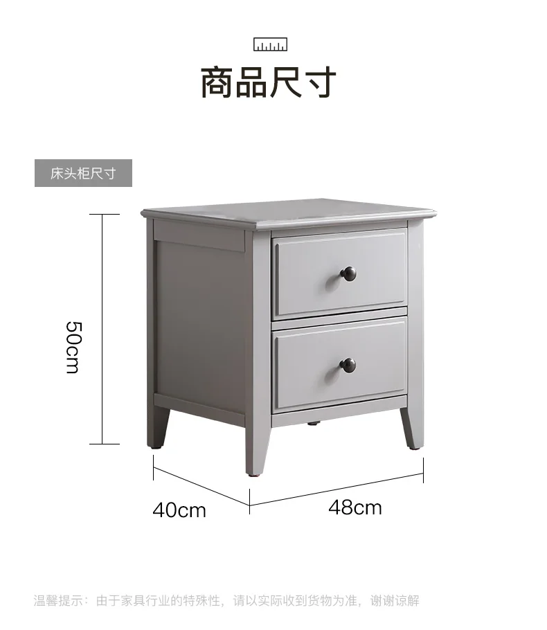 Manufacturer Quality Assurance simple design solid wood gray two draw bedside cabinet