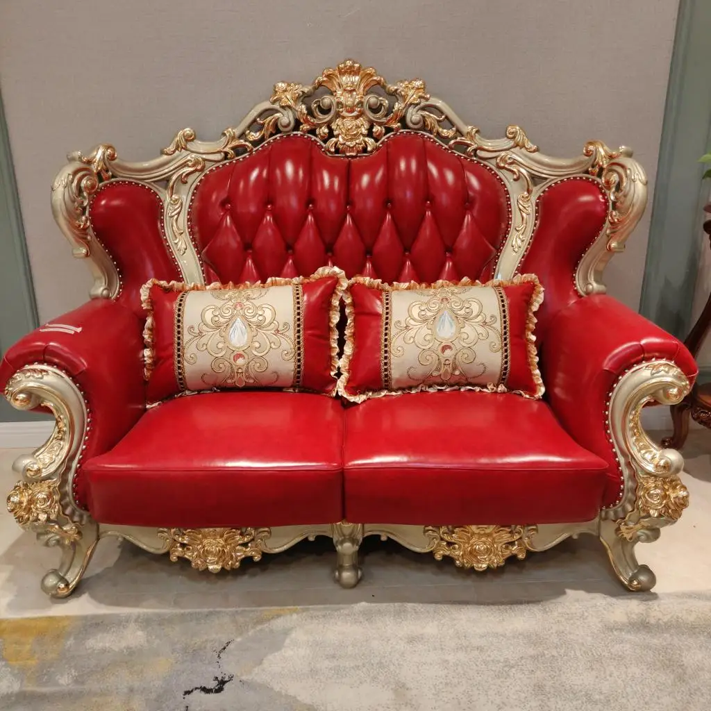Home Movable Housing Furniture & Household Appliances Living Room Furniture Sofa Foshan Haoyu Furniture Factory New Design Antique Sofa European Style solid wood hand craved Classic chesterfield Genuine Leather Sofa Sets