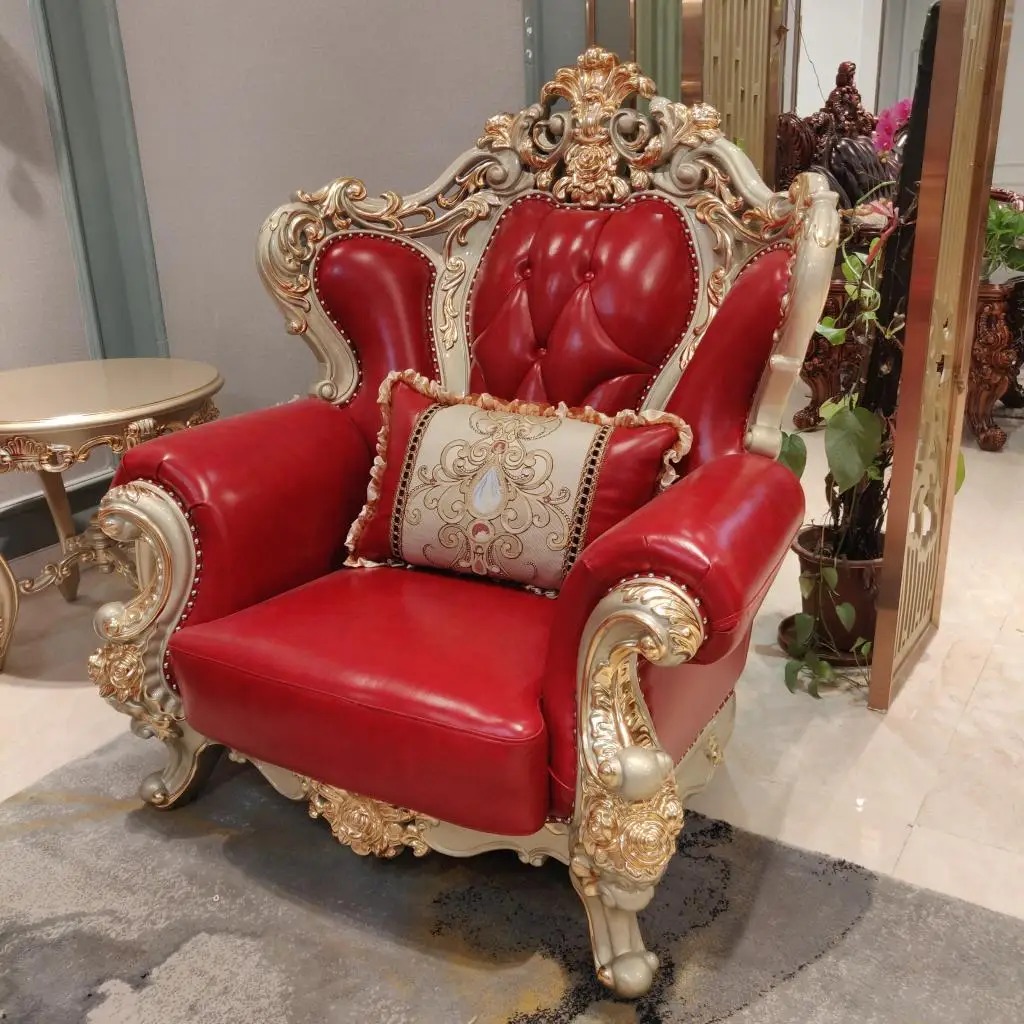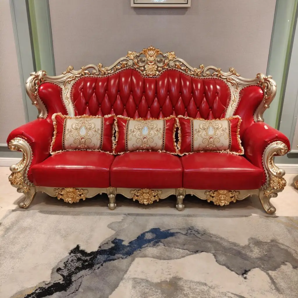 New Design Antique Sofa European Style solid wood hand craved Classic chesterfield Genuine Leather Sofa Sets