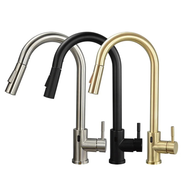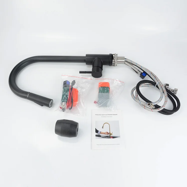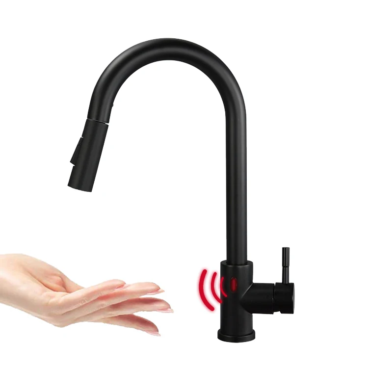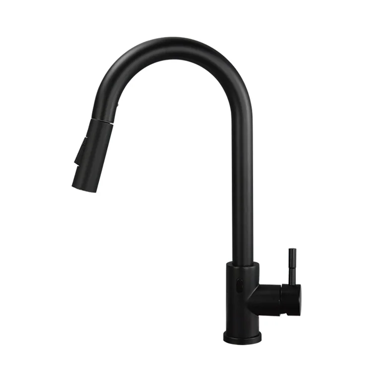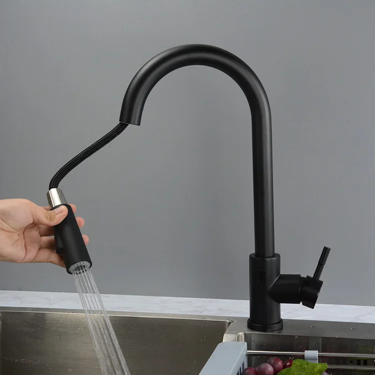 induction faucet black commercial Pull down 360 rotate sus304 stainless steel flexible kitchen faucet Factory