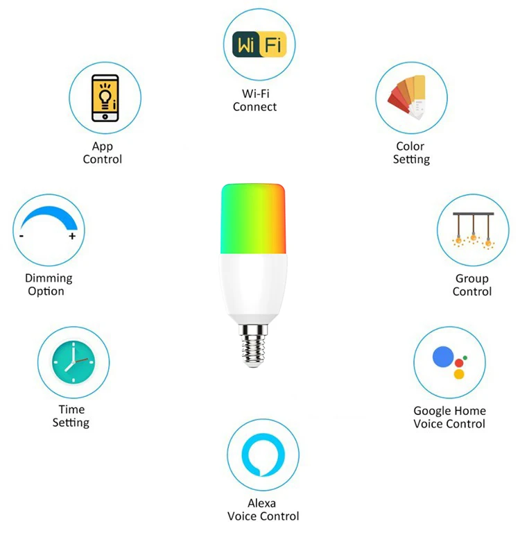 7W LED Smart Light Bulb Multicolor Dimmable WiFi LED Light Bulb Compatible with Alexa Google Home