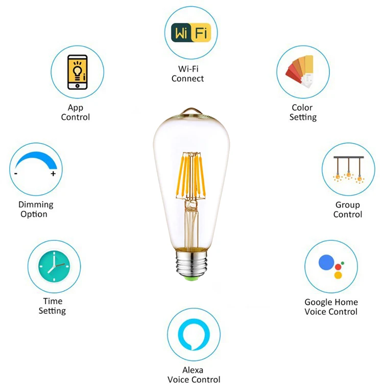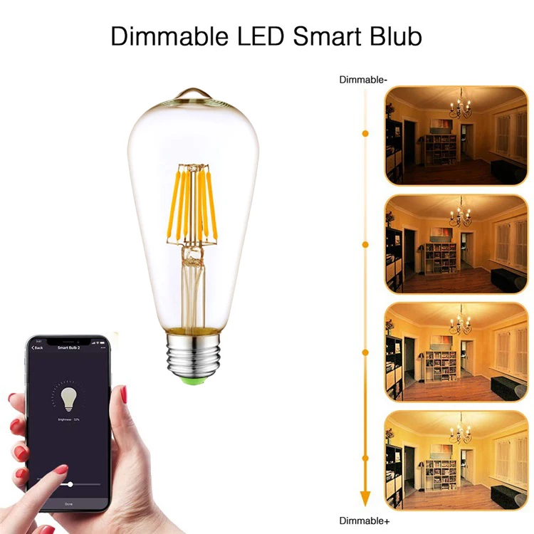 Home Lighting, Artwork & Interior Decoration Accessories Lighting Accessories Bulb Shenzhen Sowye Technology Co., Ltd. Tuya App Smart Life Control WI-FI 2.4G Hz led dimmable & CCT color change light bulb smart filament bulb 6w