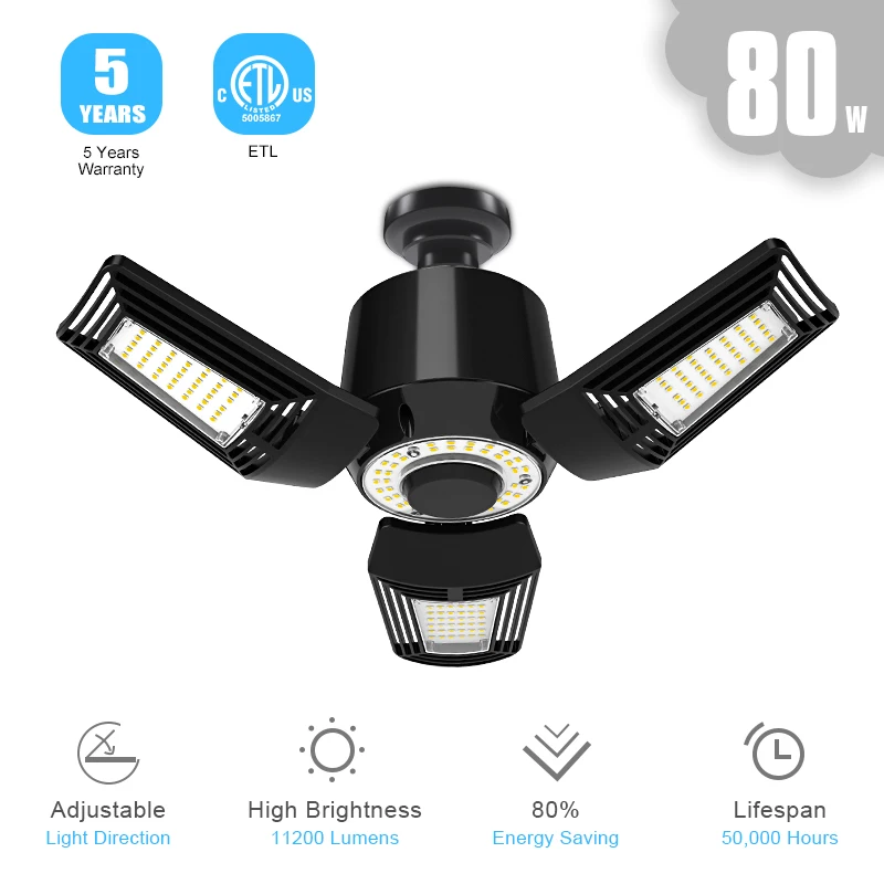 Hot sale E26 medium base etl listed factory indoor warehouse lights LED Garage Light 80w