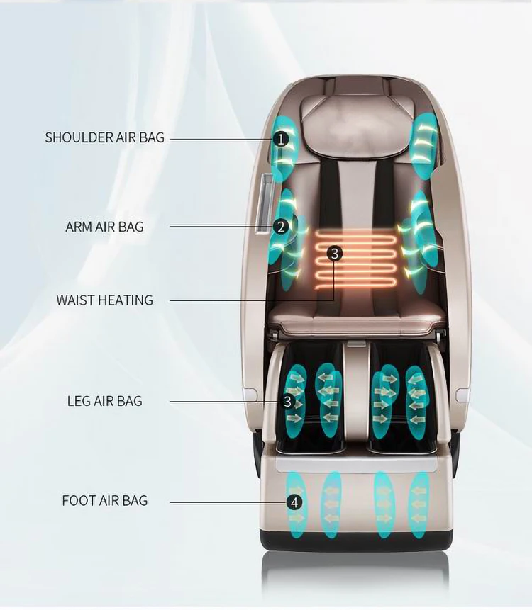 1. New massage hands; 2. SL shape guide; 3. Forward sliding; 4. Sole of foot roller ; 5. Bluetooth; 6. Paint apprearance of plastic.