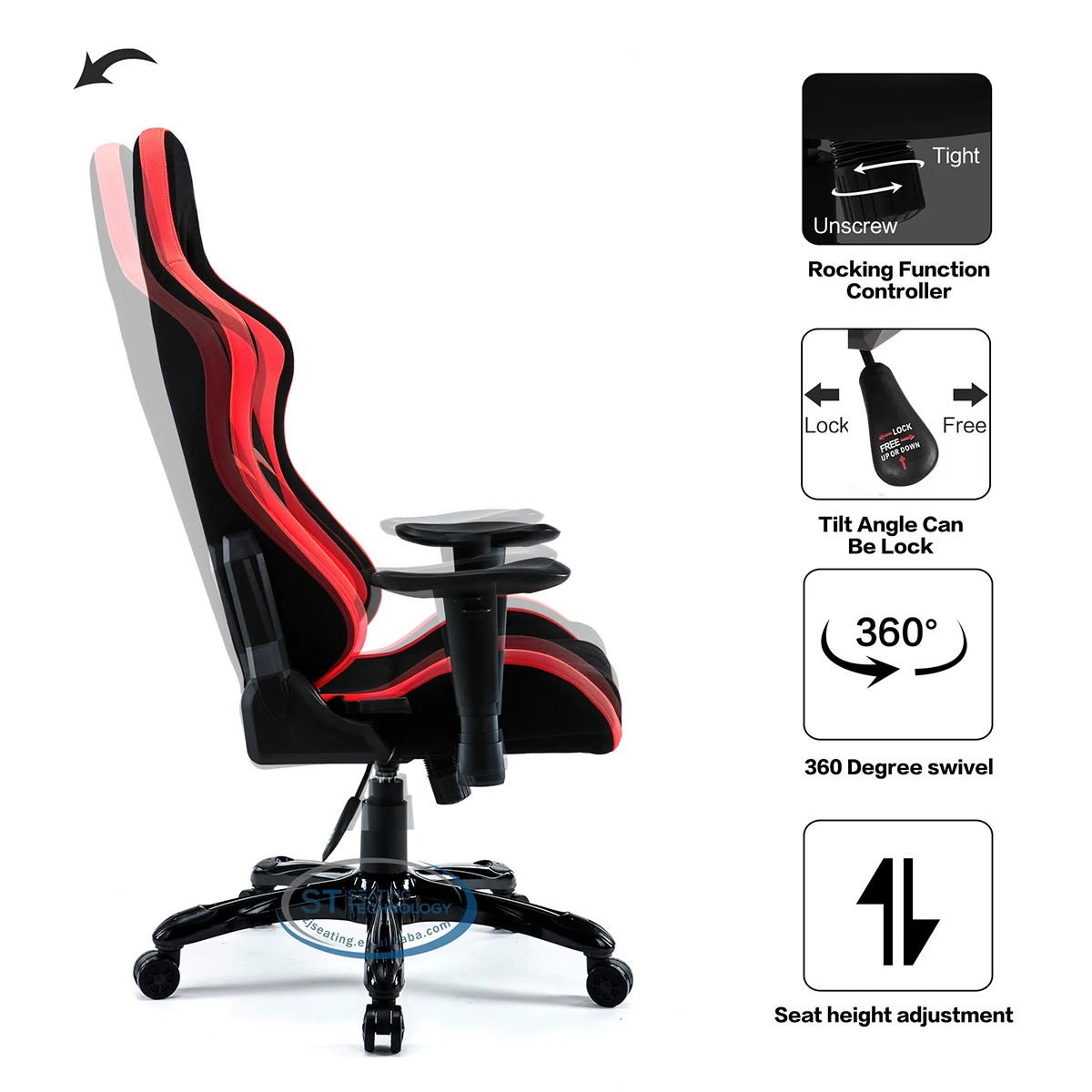 Home Office,Conference,School & Restaurant Furniture Office Furniture Office Chairs Zhejiang Seating Technology Co., Ltd. Anji manufacturer high quality best selling ST red racing PU/PVC ergonomic gaming chairs