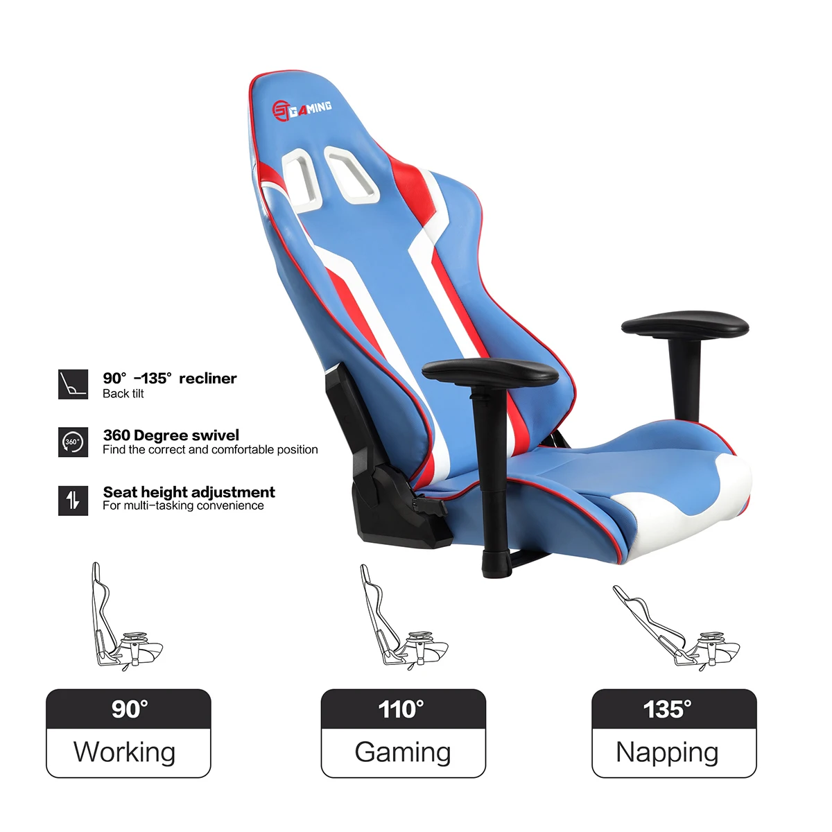 ST Gaming Racing PU Leather Ergonomic gaming Chair With Metal Base