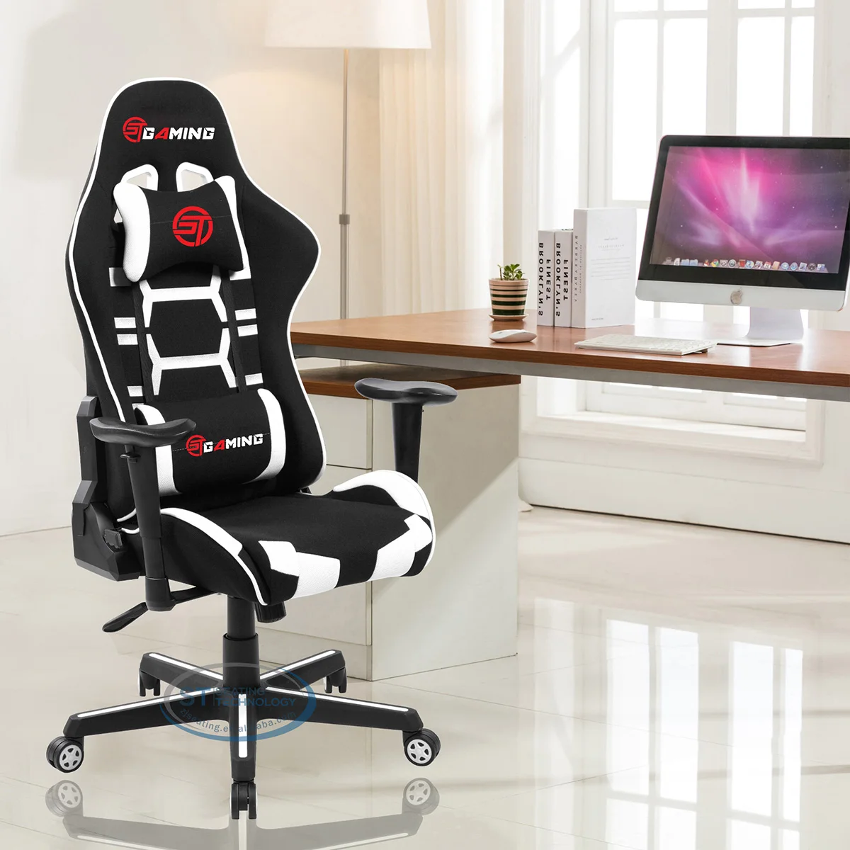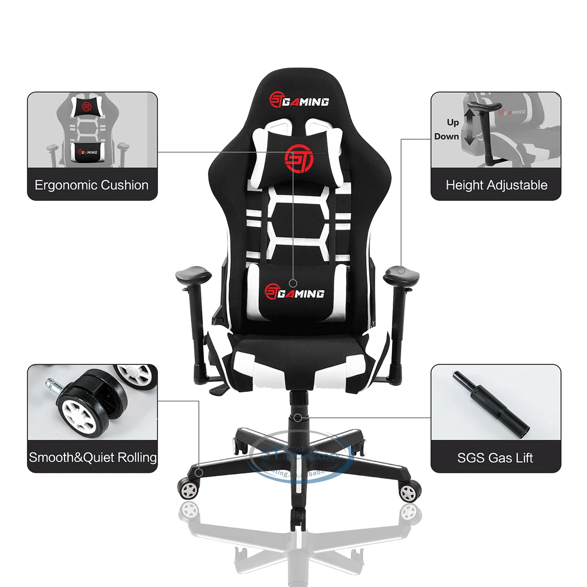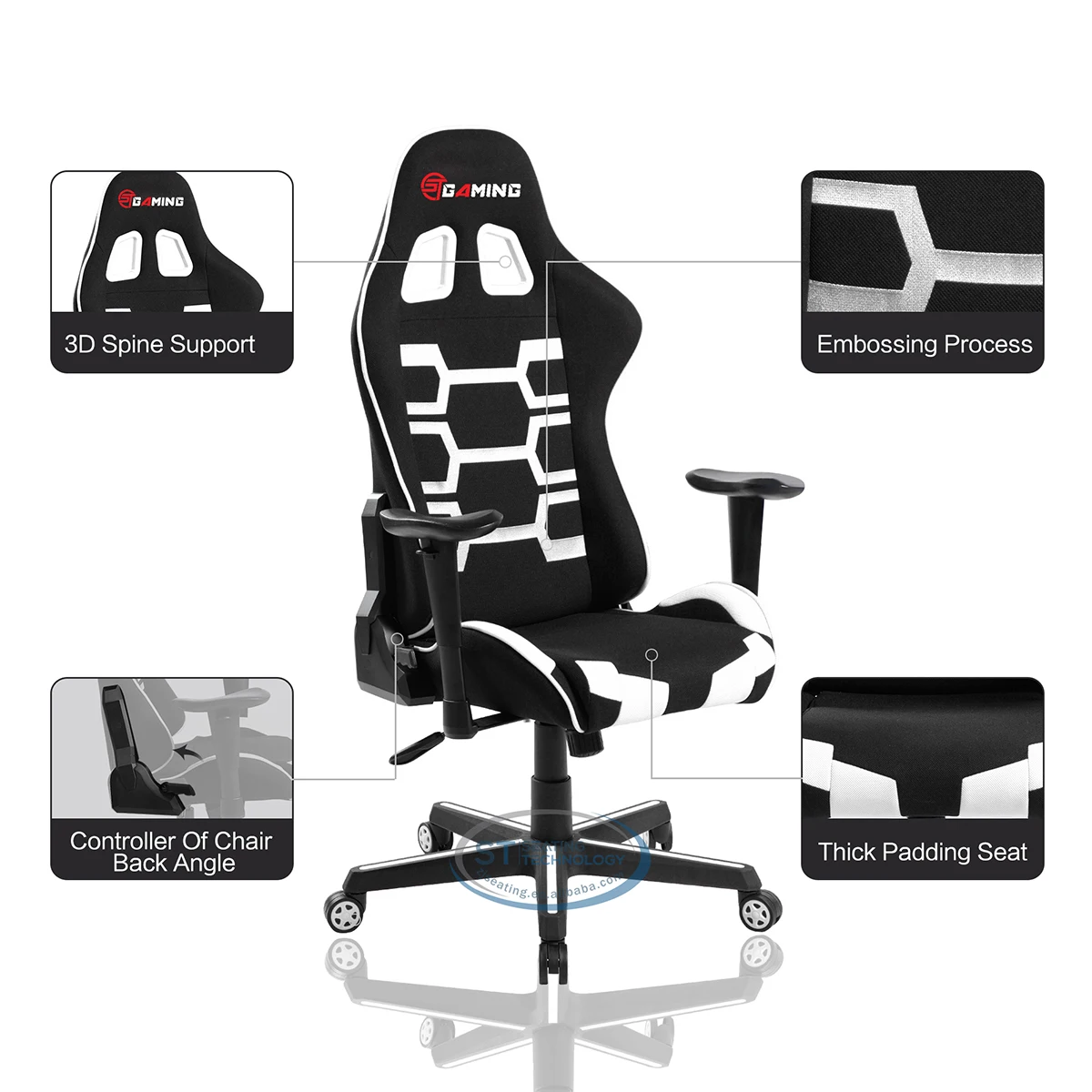Home Office,Conference,School & Restaurant Furniture Office Furniture Office Chairs Zhejiang Seating Technology Co., Ltd. 2021 New Design Black And White Customize Embroidery Logo ST Gaming Racing Computer Fabric Ergonomic Chair