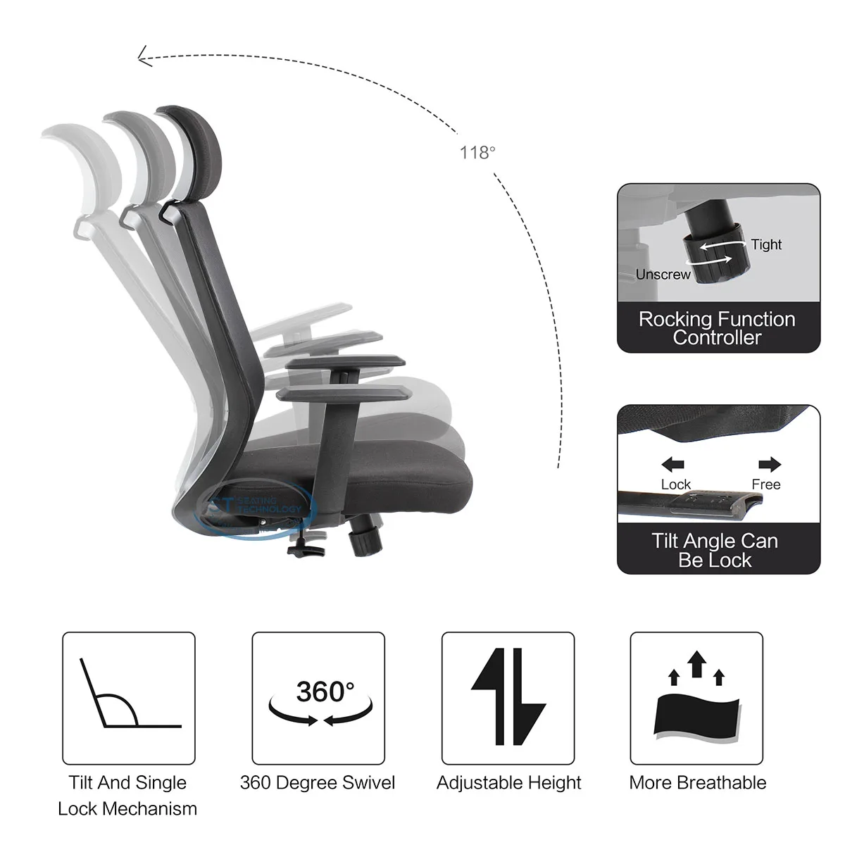 Home Office,Conference,School & Restaurant Furniture Office Furniture Office Chairs Zhejiang Seating Technology Co., Ltd. ST Office Chairs High Back Full Mesh Foaming Ergonomic Design Swiveling Cushion Chair swivel chair