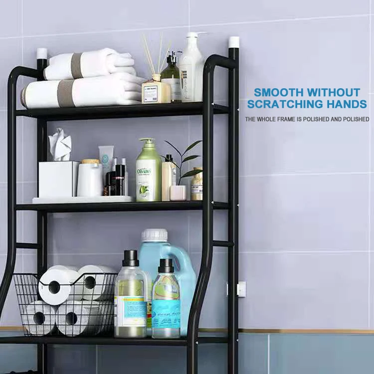 Bathroom washing machine multi-functional three-layer rack shelf toilet paper holder with shelf floor storage shelf