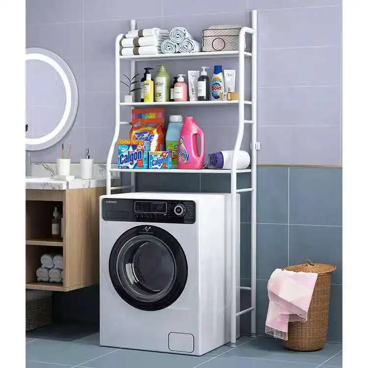 Home Bathroom Products,Sinks Bathroom Accessories & Others Bathroom Accessories Yiwu Yimi Supply Chain Management Service Co., Ltd. Bathroom washing machine multi-functional three-layer rack shelf toilet paper holder with shelf floor storage shelf
