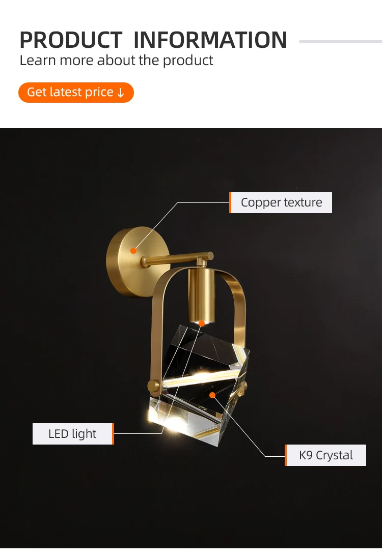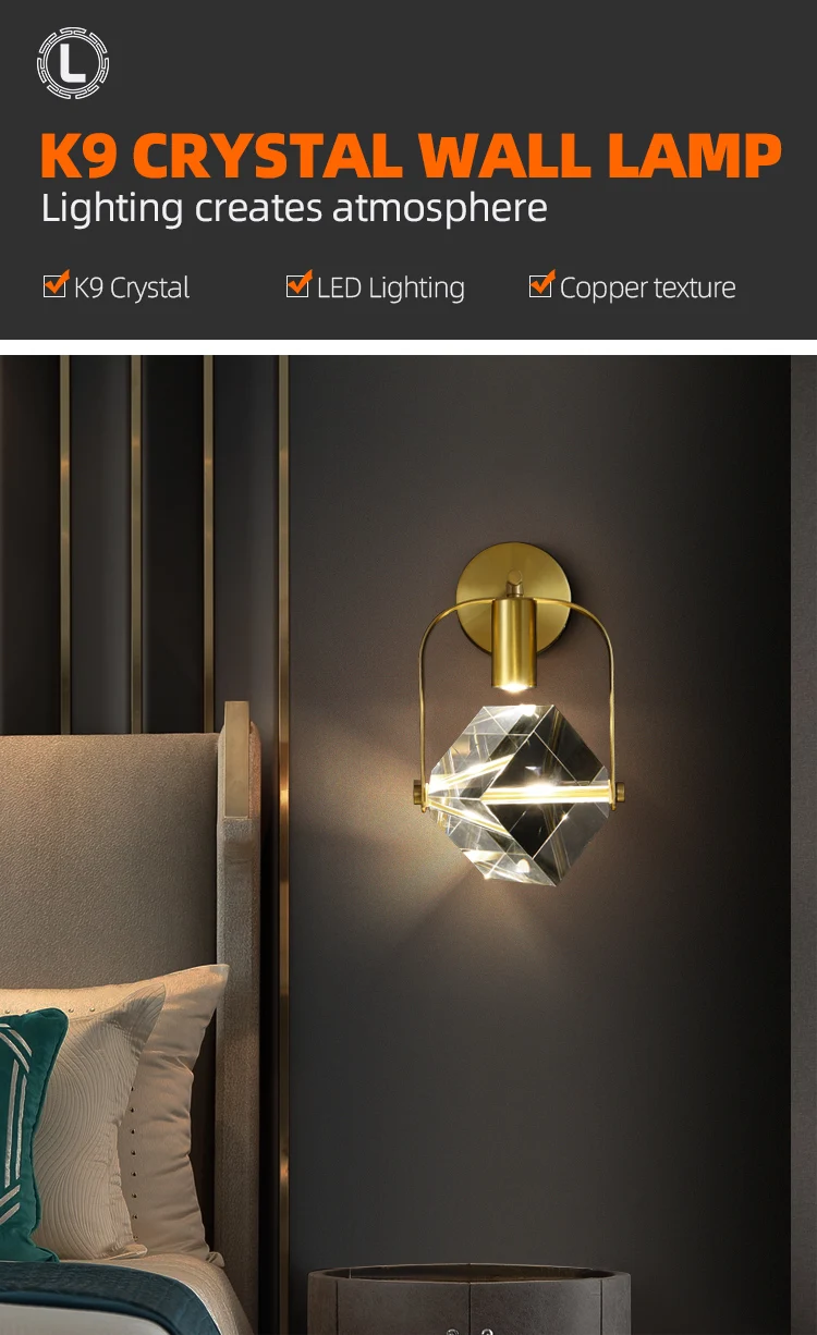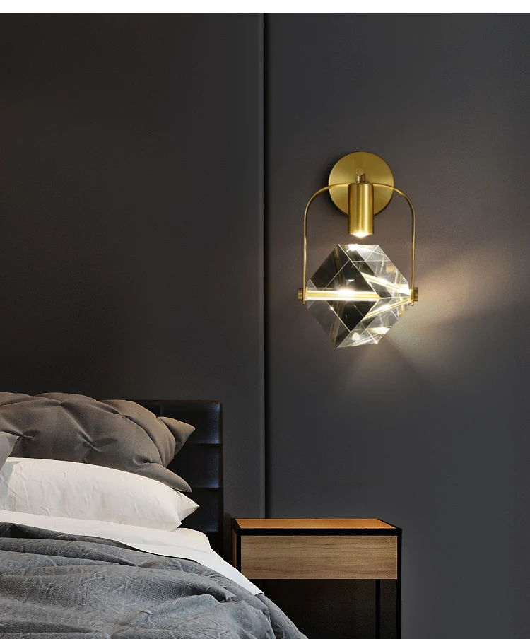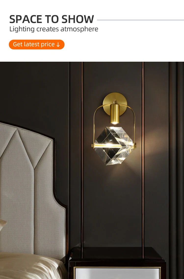 Contemporary nordic crystal single head small chandelier hotel bedside bedroom TV background wall hanging light wall lamp