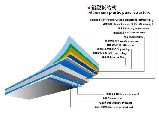 Aluminium composite panel consisting of two aluminium cover sheets(AA1100 Series or AA3003 Series) sandwiching a non-toxic low