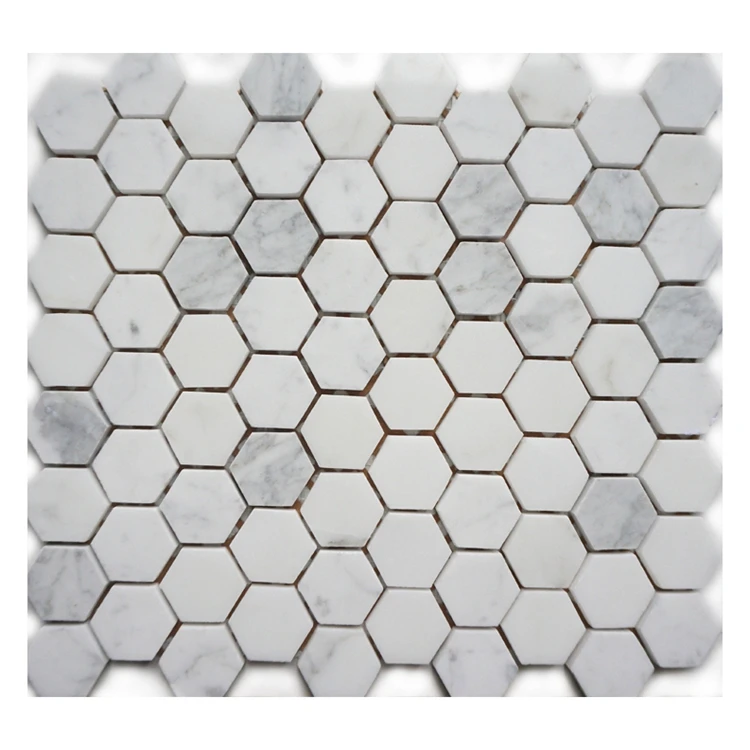 Home Stone,Tiles,Flooring & Walls Material Mosaic Stone Mosaic Ralart Mosaic Co., Ltd. Brush Hammered 2inch White Stone Hexagon Waterjet Tile Grey Wall Marble Mosaic
