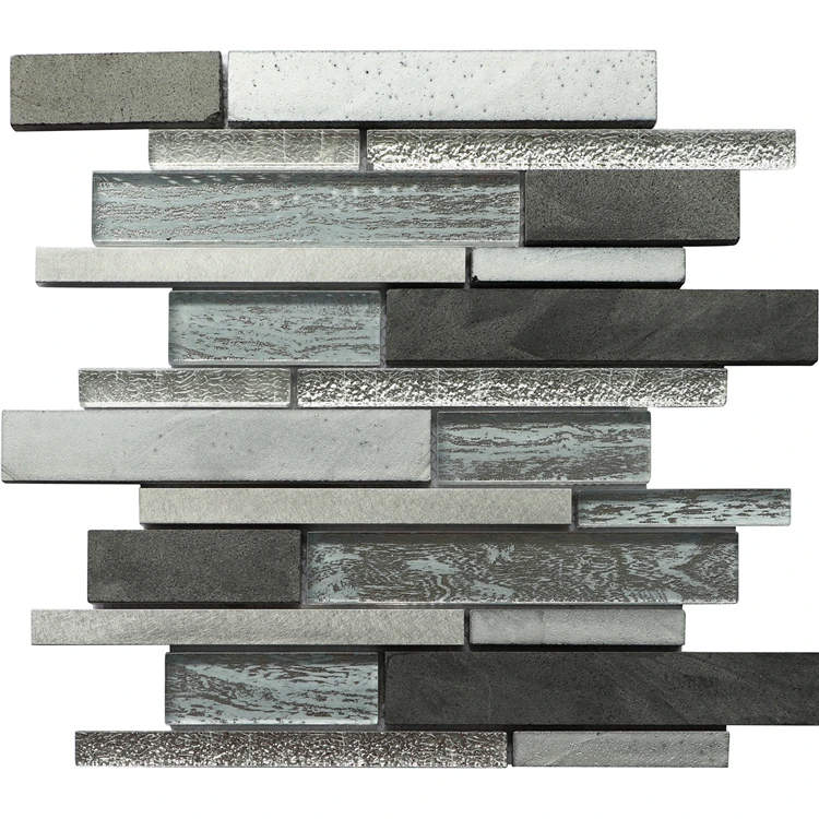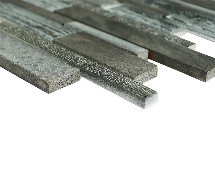 Irregular Strip Stone Crystal Glass Mosaic Tiles For Wall Decoration