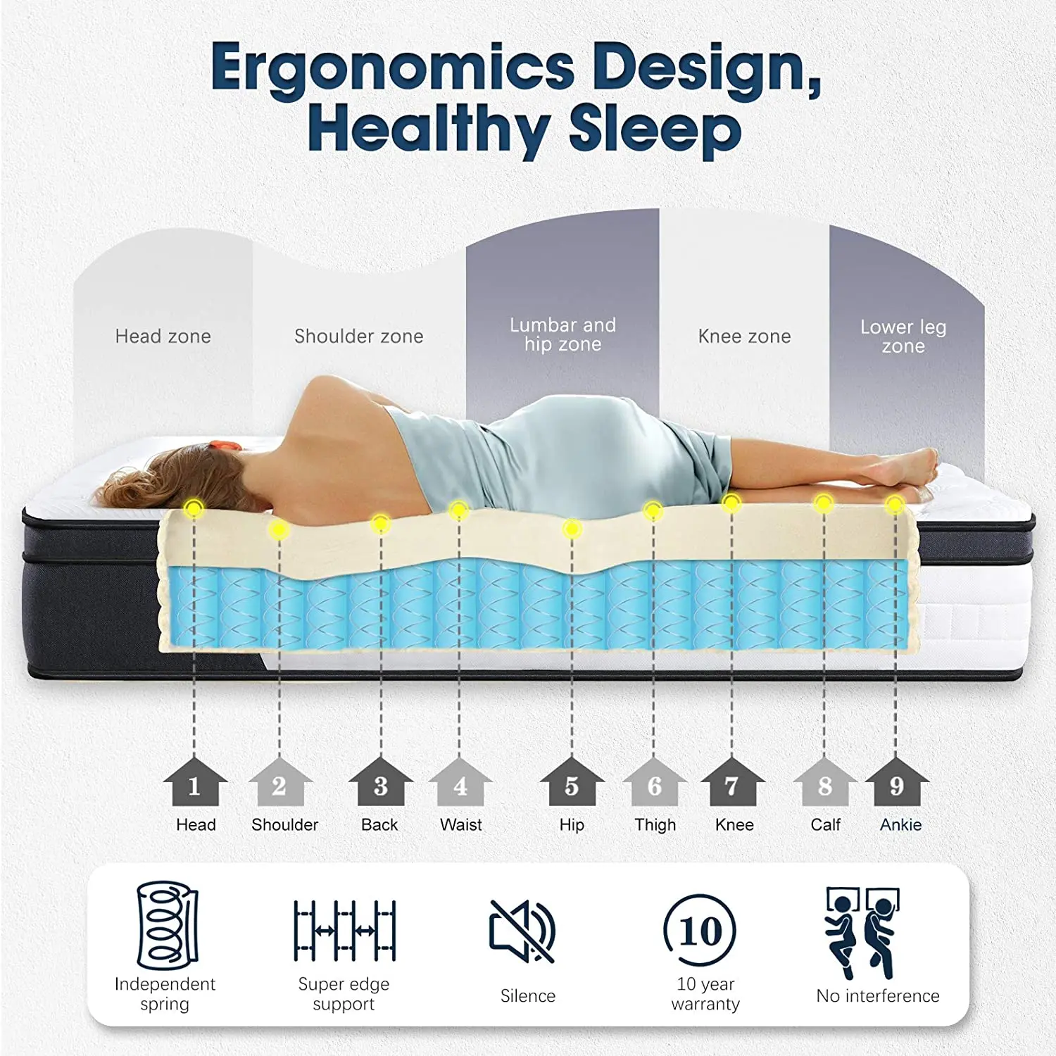 Twin Mattress Twin Memory Foam Mattress Single Bed with Silent Independent Pocket Spring System