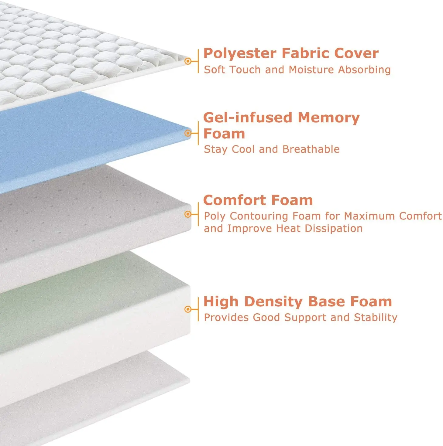 Memory Foam Mattress, 6 Inch Gel Infused Foam Mattress, Medium Firm Foam Hybrid Mattress Support Bed Mattress Sleep Cooler