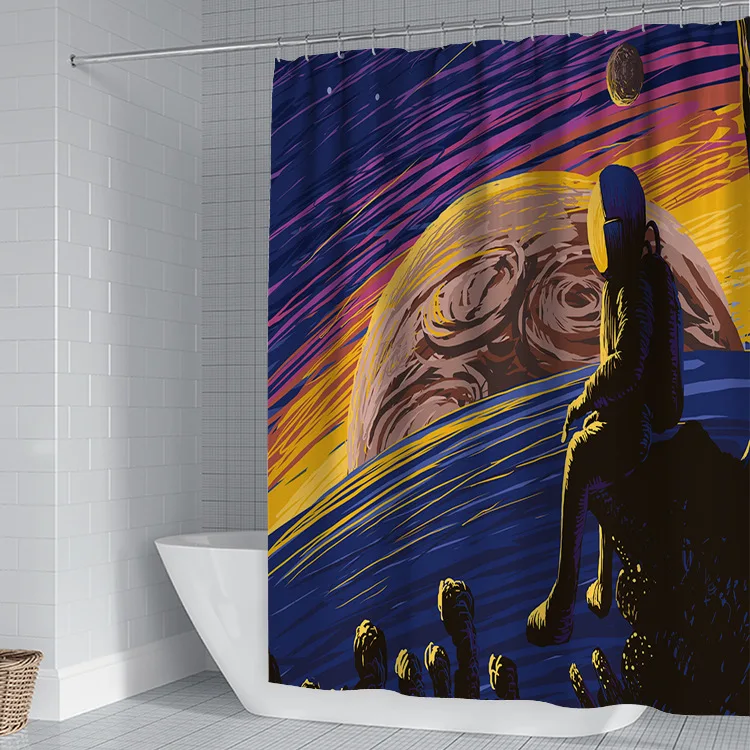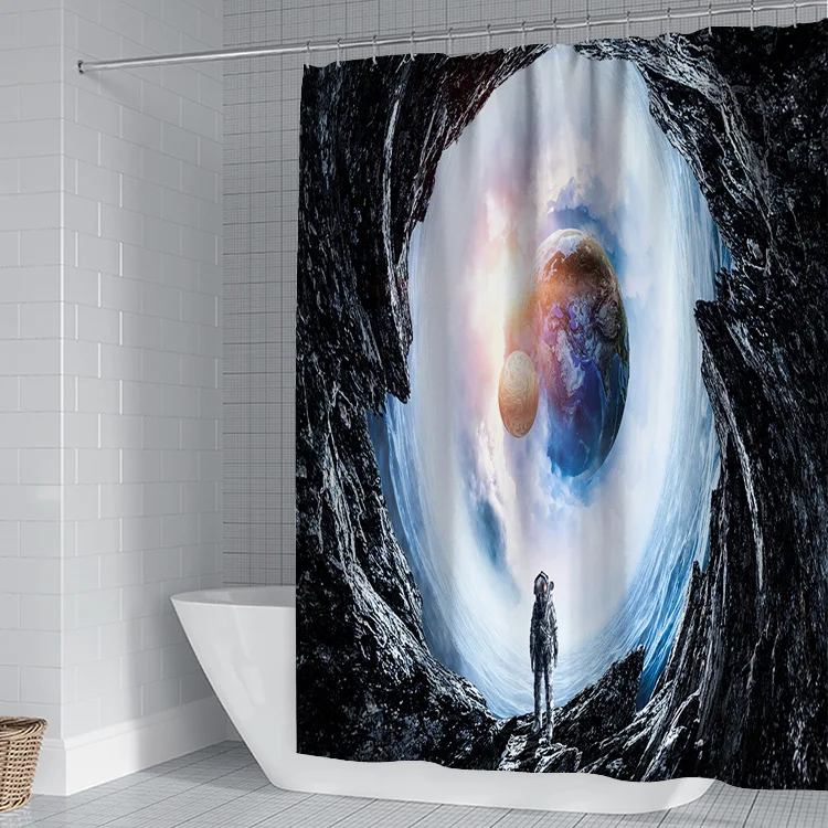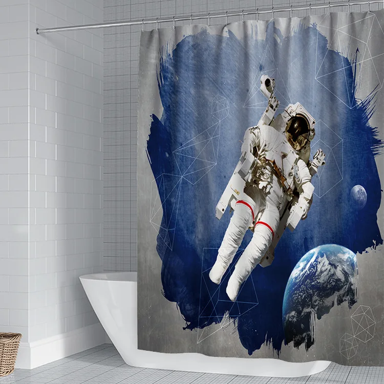 Home Bathroom Products,Sinks Bathroom Accessories & Others Others Yiwu Yixian E-Commerce Co., Ltd. 3D Digital Printing Astronaut Shower Curtain Pvc Shower Curtain