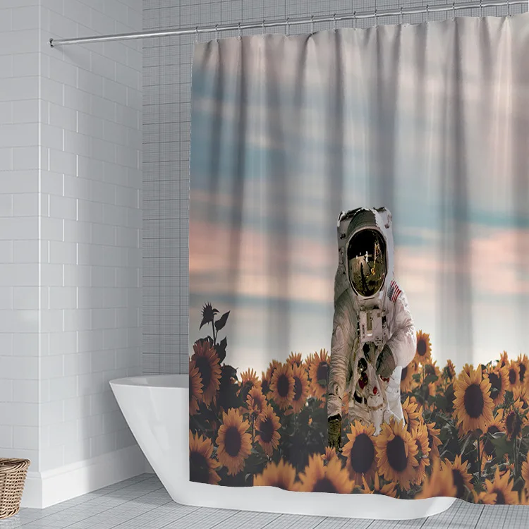 3D Digital Printing Astronaut Shower Curtain Pvc Shower Curtain