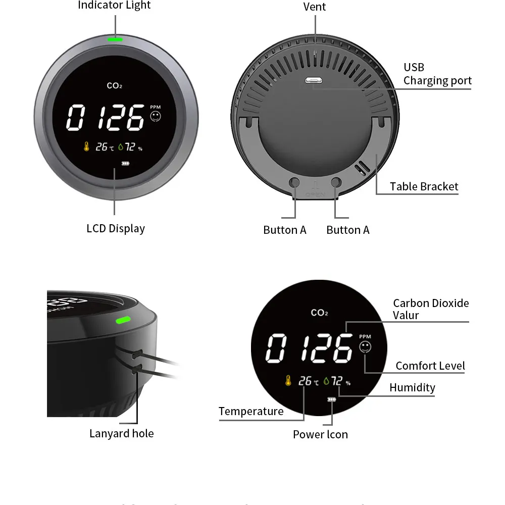 Indoor Air Quality Electronic CO2 Temperature Humidity Best Gas Detector for Home