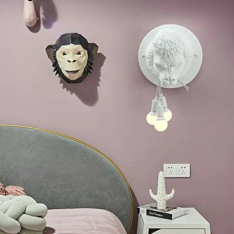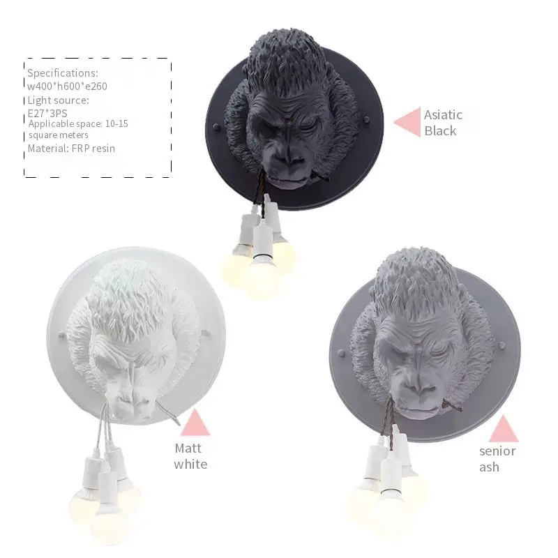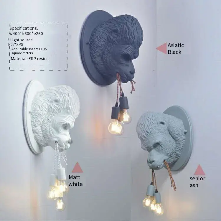 Post modern creative design gorilla interior wall lamp simple industrial wind design wall lamp Ape head wall lamp