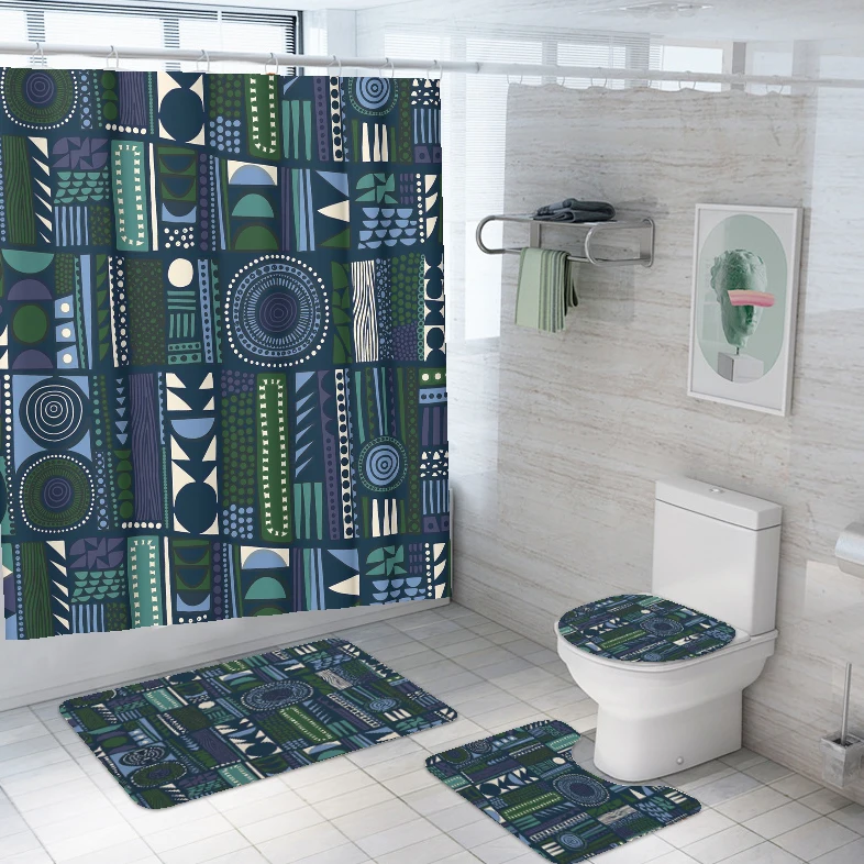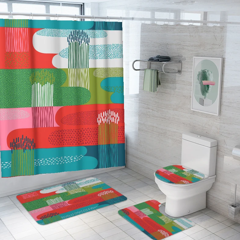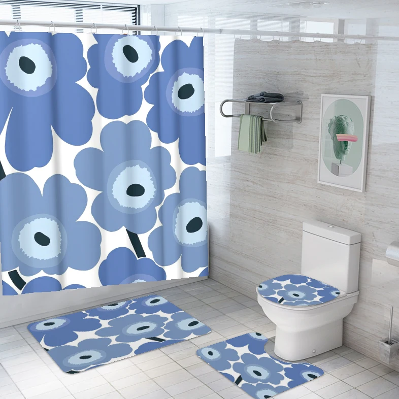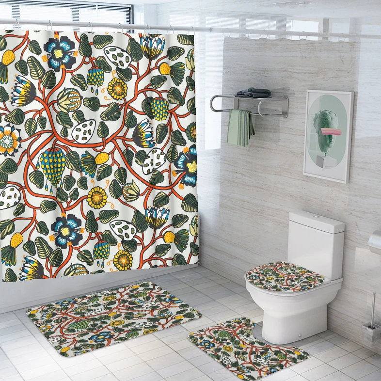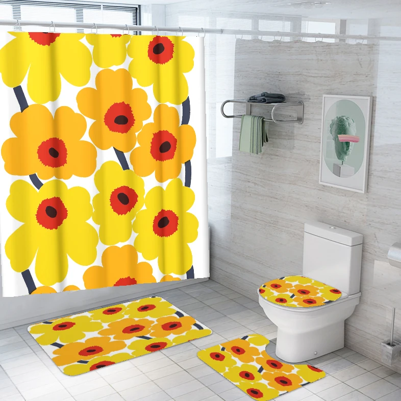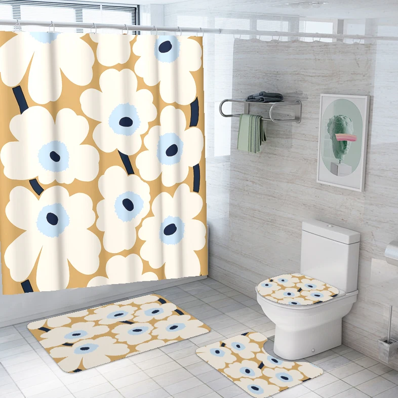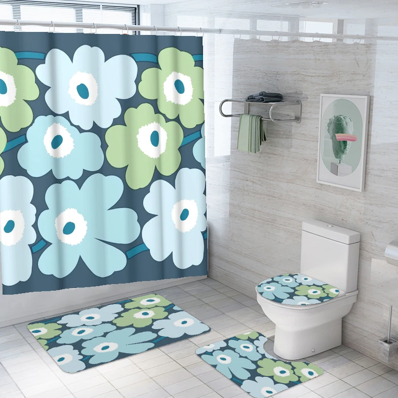 Home Bathroom Products,Sinks Bathroom Accessories & Others Others Yiwu Yixian E-Commerce Co., Ltd. Bathroom Set of 4 Shower Curtain Flower Waterproof Washable 12 Hooks with Toilet Lid Cover Mat Sets Non-Slip Bathroom Rugs Mats