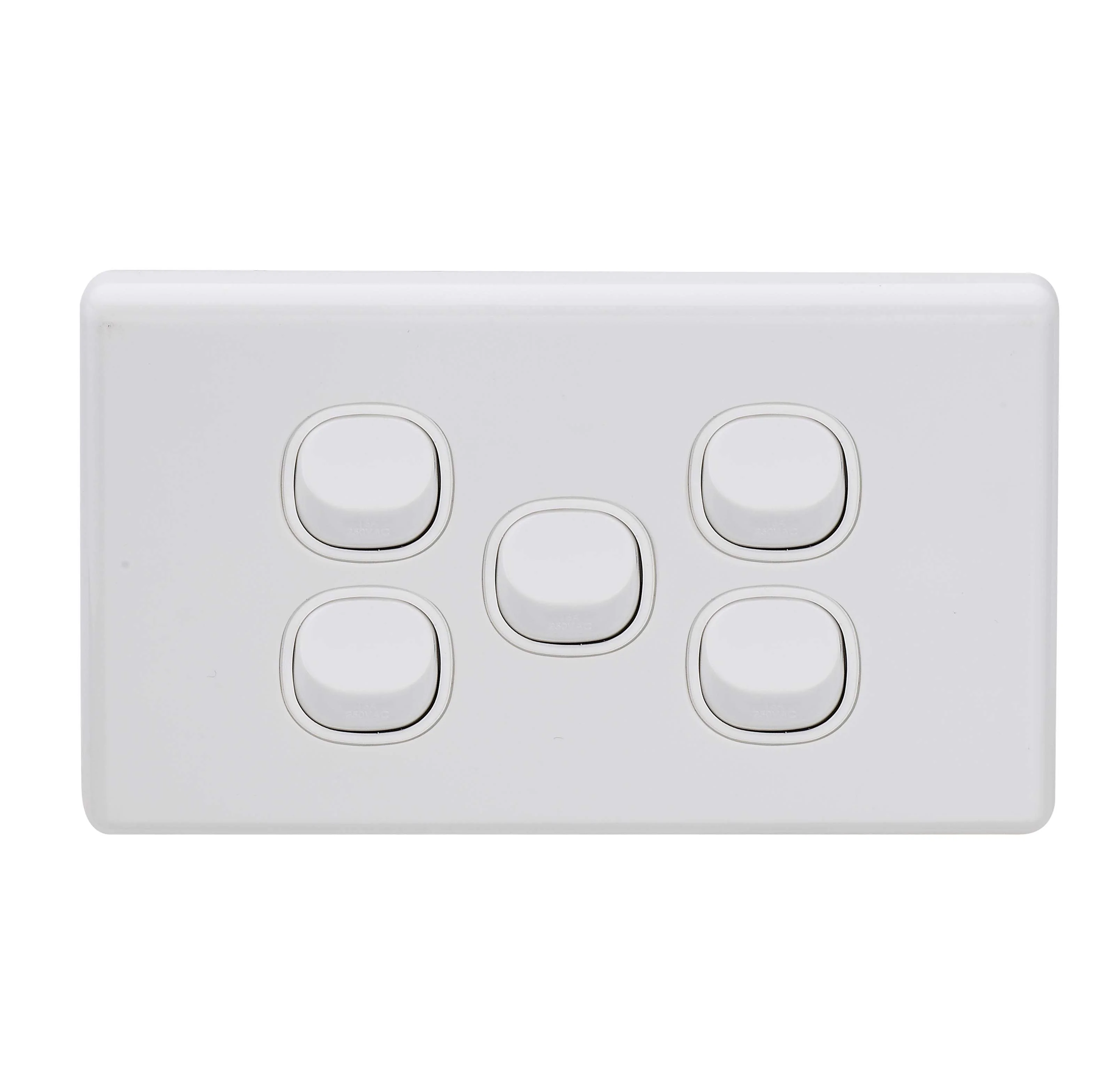 5 Gang 16A SAA wall approved light Slimline Switch