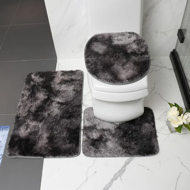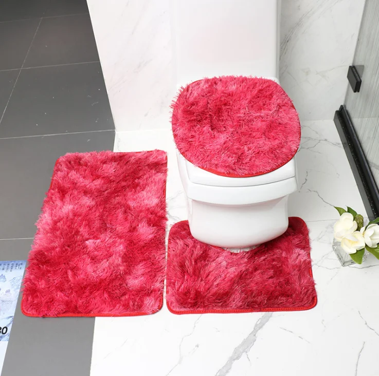 Best Quality Solid Color Polyester Shaggy Rubber Backing Toilet Mat 3 Piece Set Bath Carpets and Rugs Soft Floor Mat
