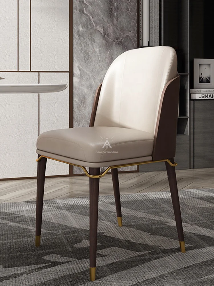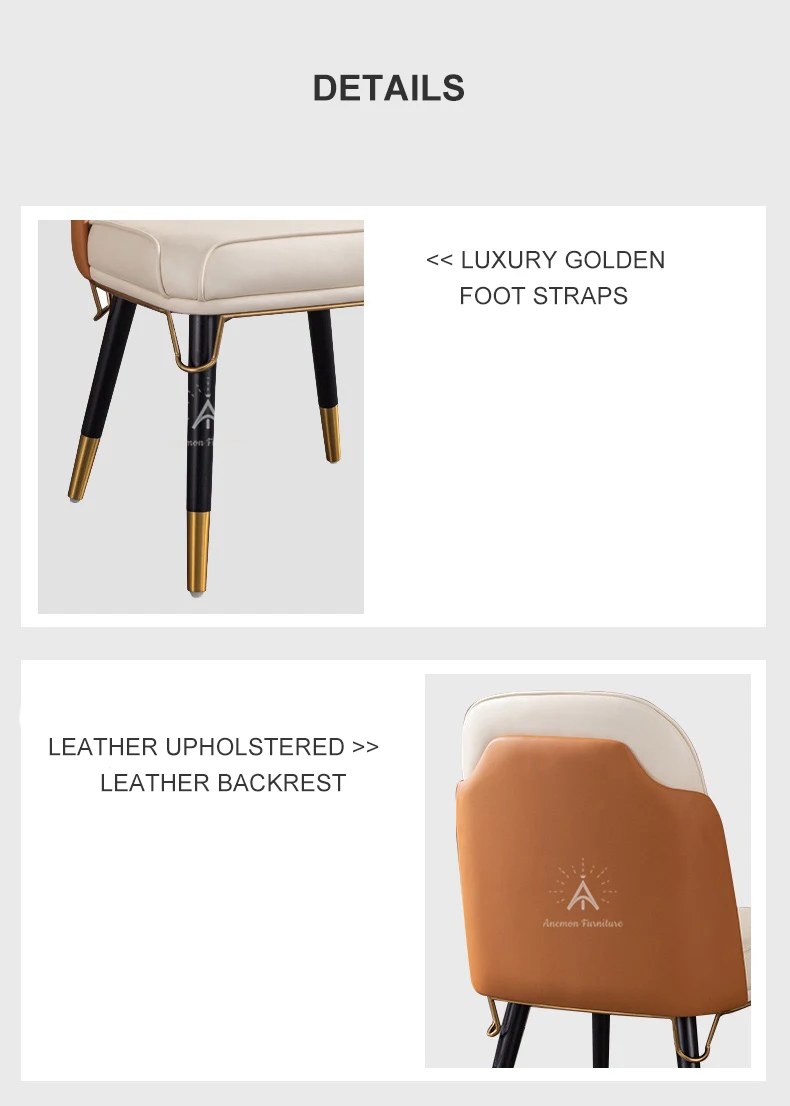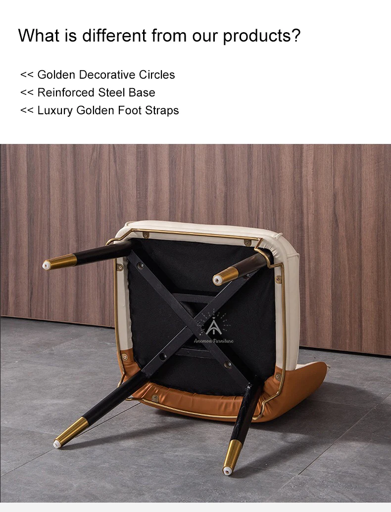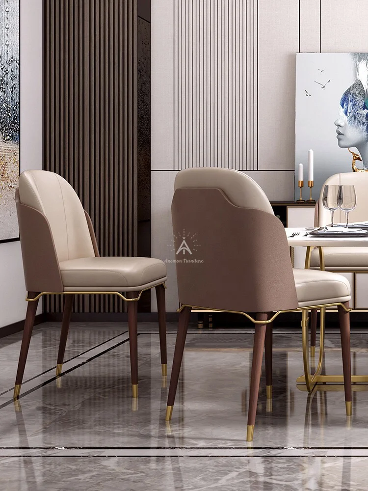 Home Movable Housing Furniture & Household Appliances Dining Room Furniture Dining Chairs Foshan Anemon Furniture Co., Ltd Luxury Faux Leather Bent Wood Dining Chair with Golden Steel Legs (AF D138)