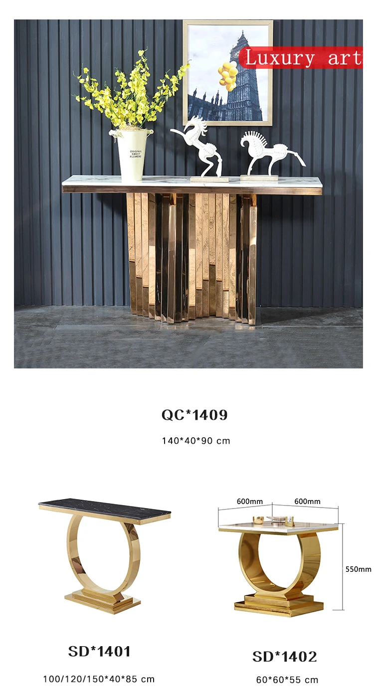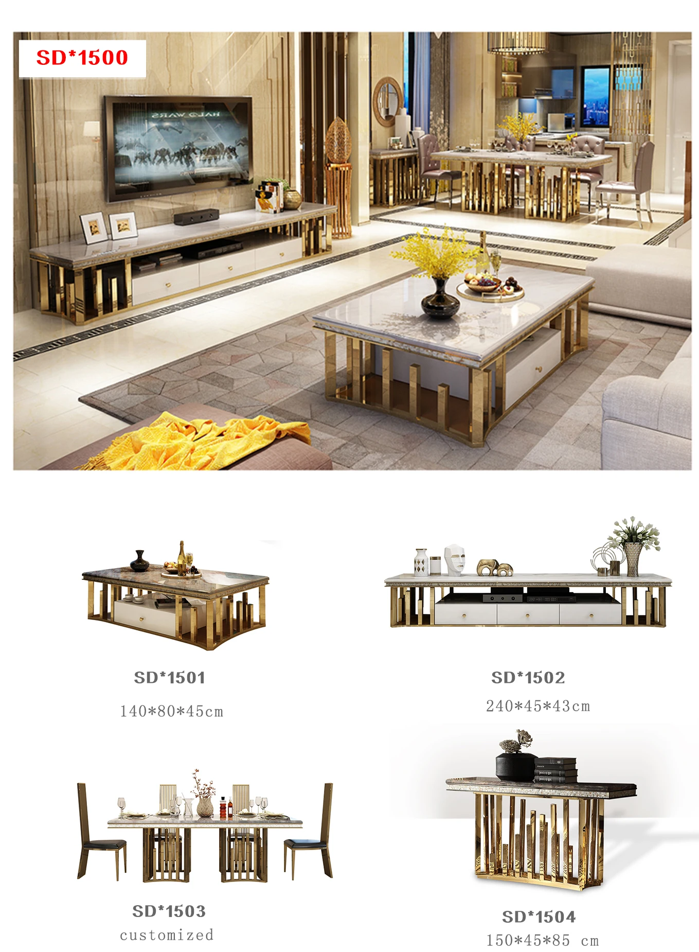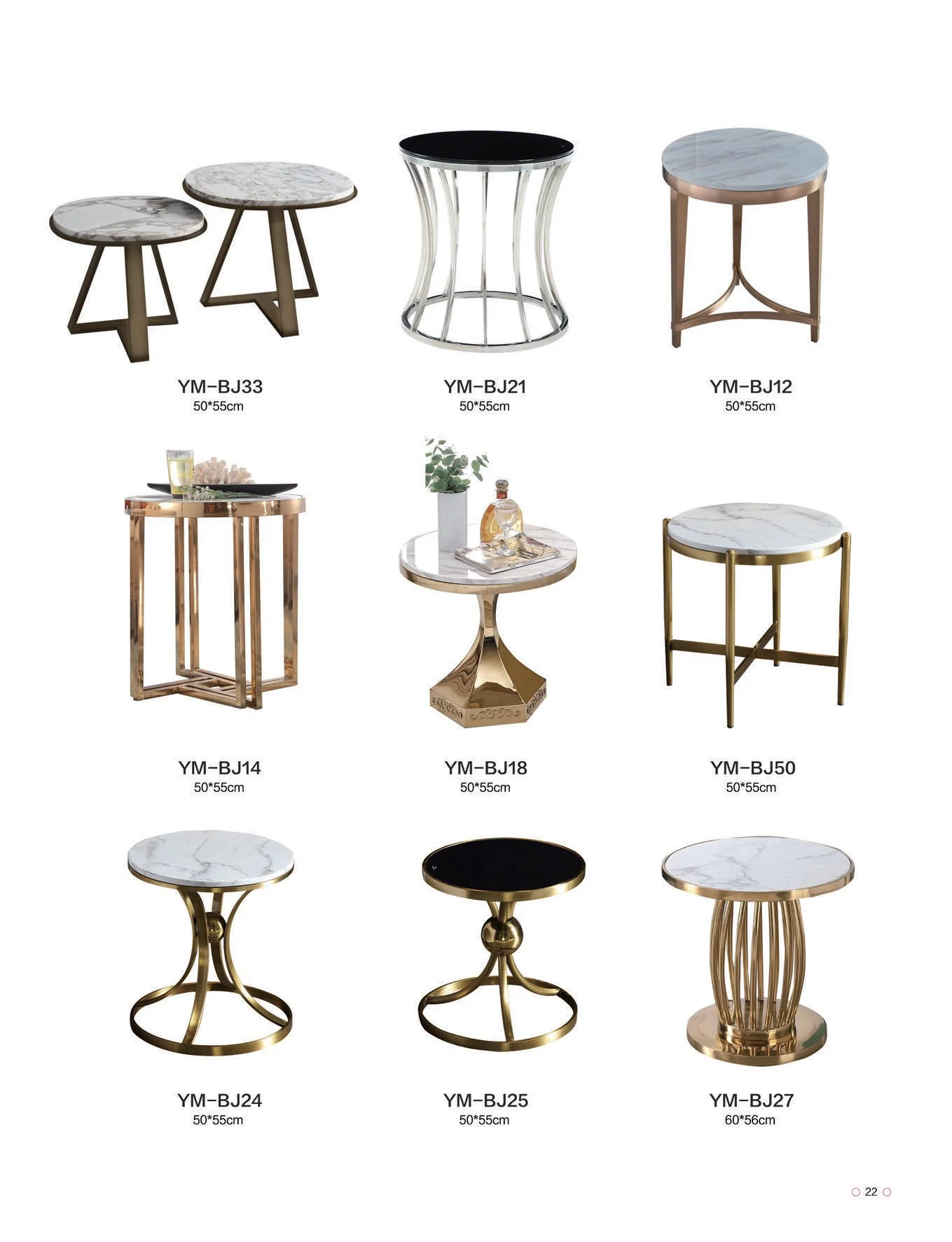 luxurious other metal Furniture Tables Stainless Steel Marble Modern Luxury Simple Black Top White living room furniture sets