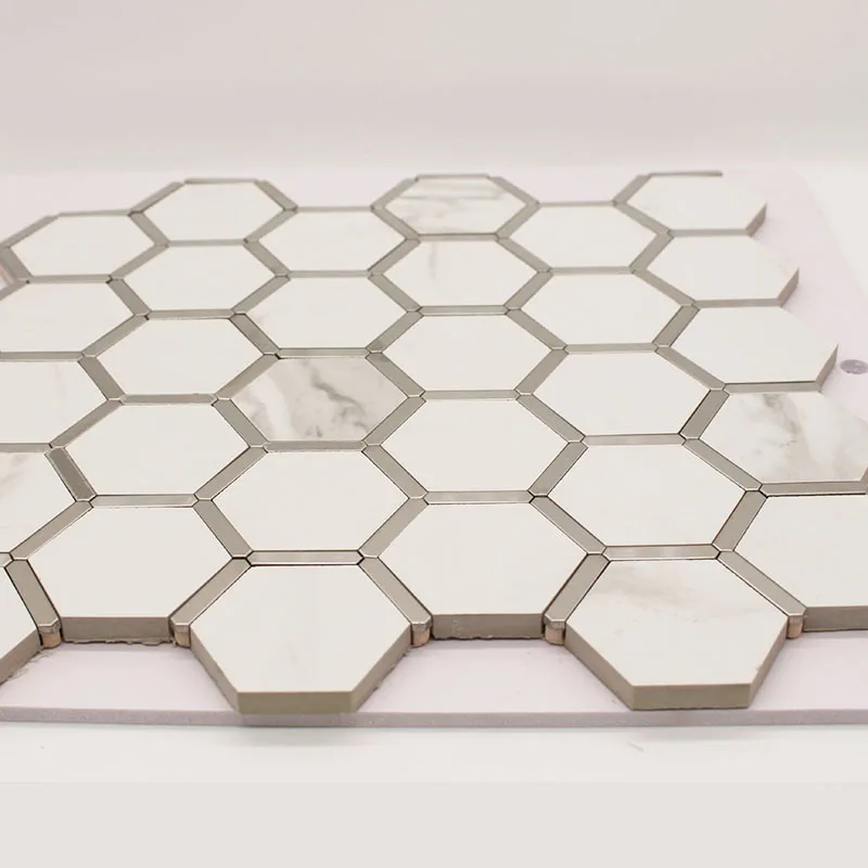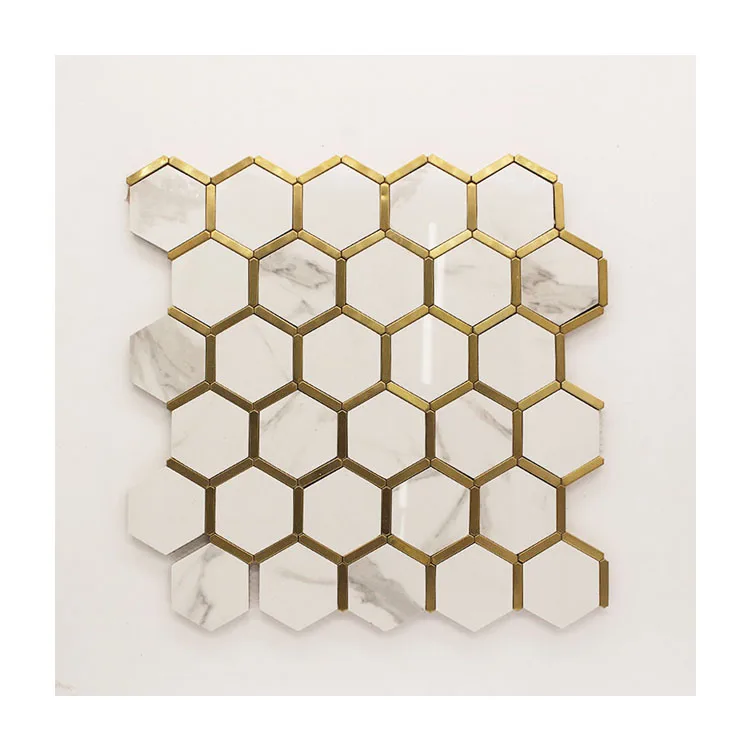 China suppliers cheap hexagon sahpe glazed glossy white and gold ceramic strip tile mosaic pattern ceramic mosaic tile