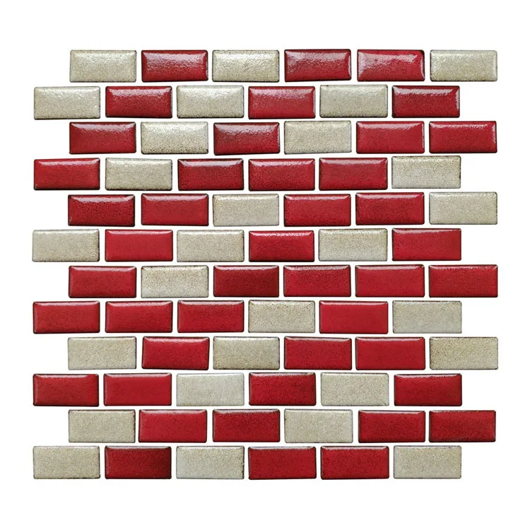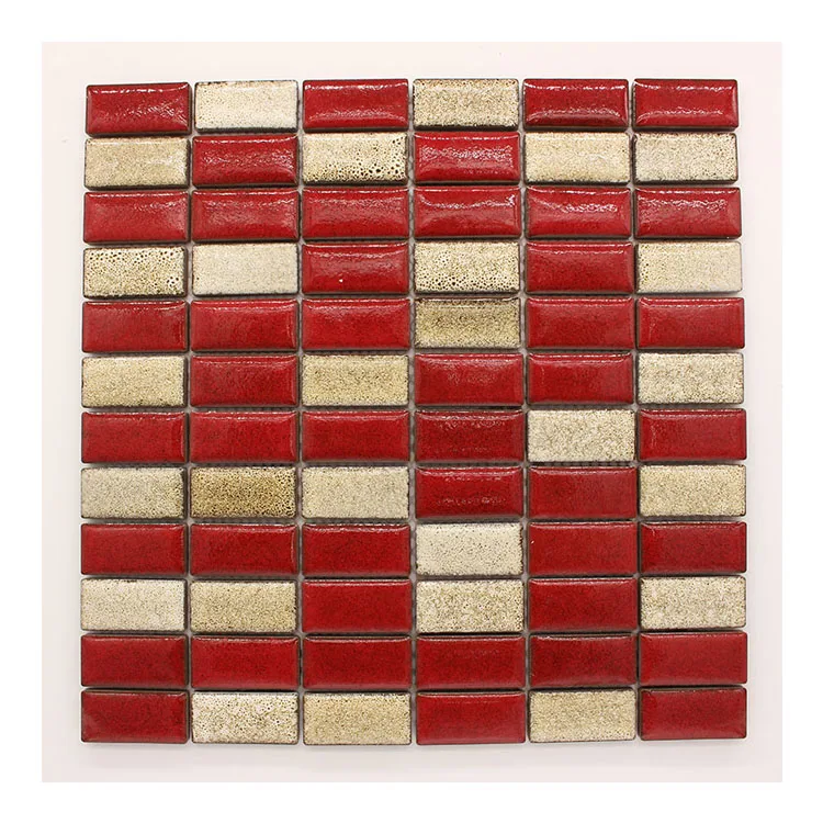 Mosaicos New design Strip White Red Porcelain Mosaic Tiles Ceramic Mosaic For Kitchen Backsplash Bathroom Wall Decor