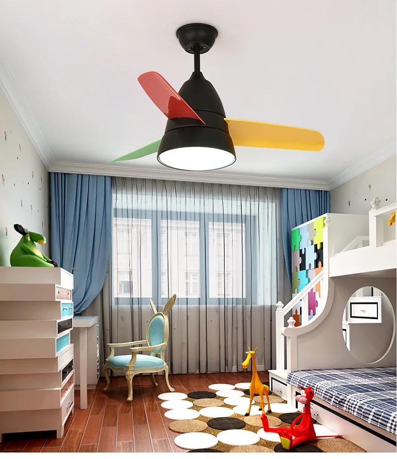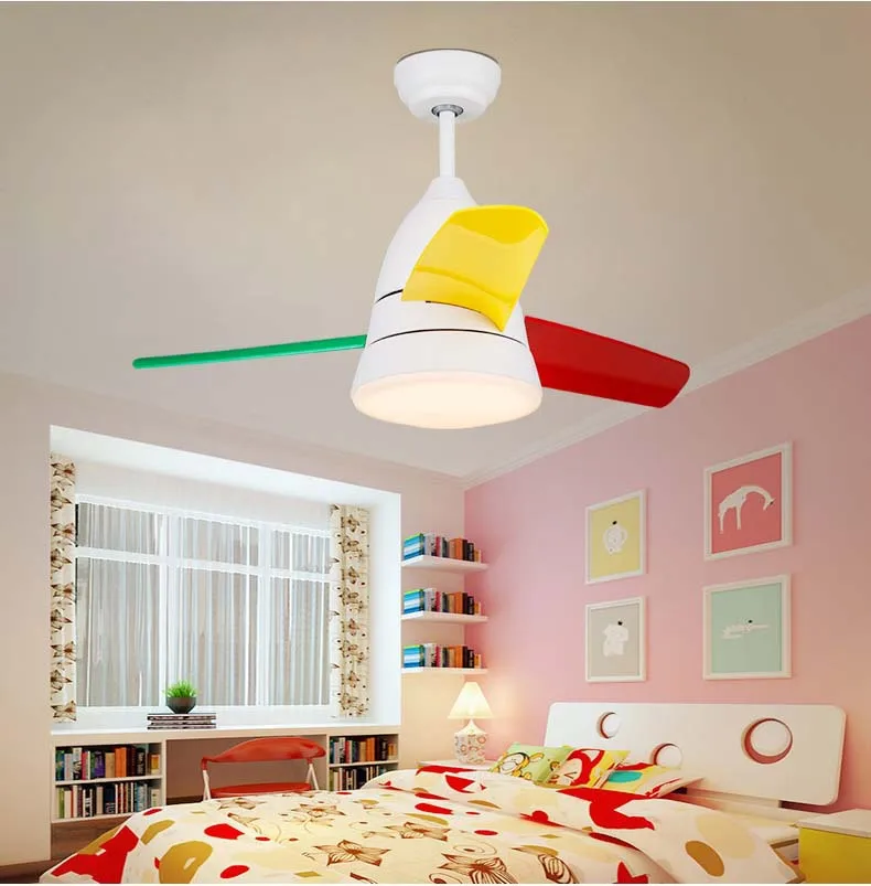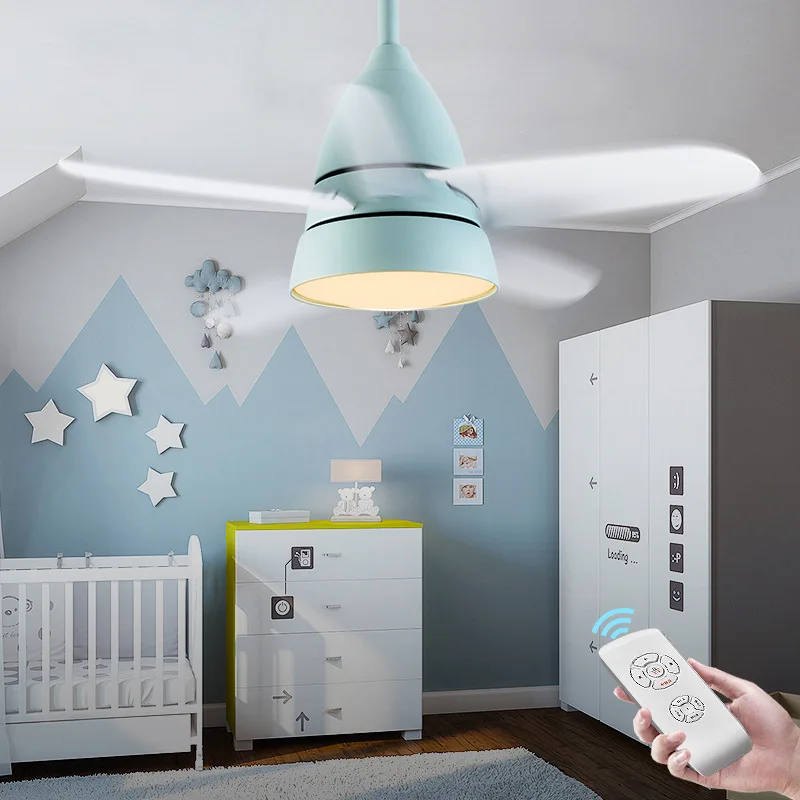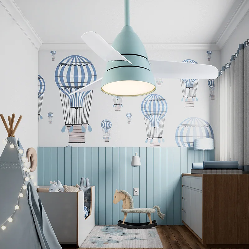 Nordic modern household room dining room fan lamp children fan lamp bedroom LED macaroon chandelier ceiling fan with lamp