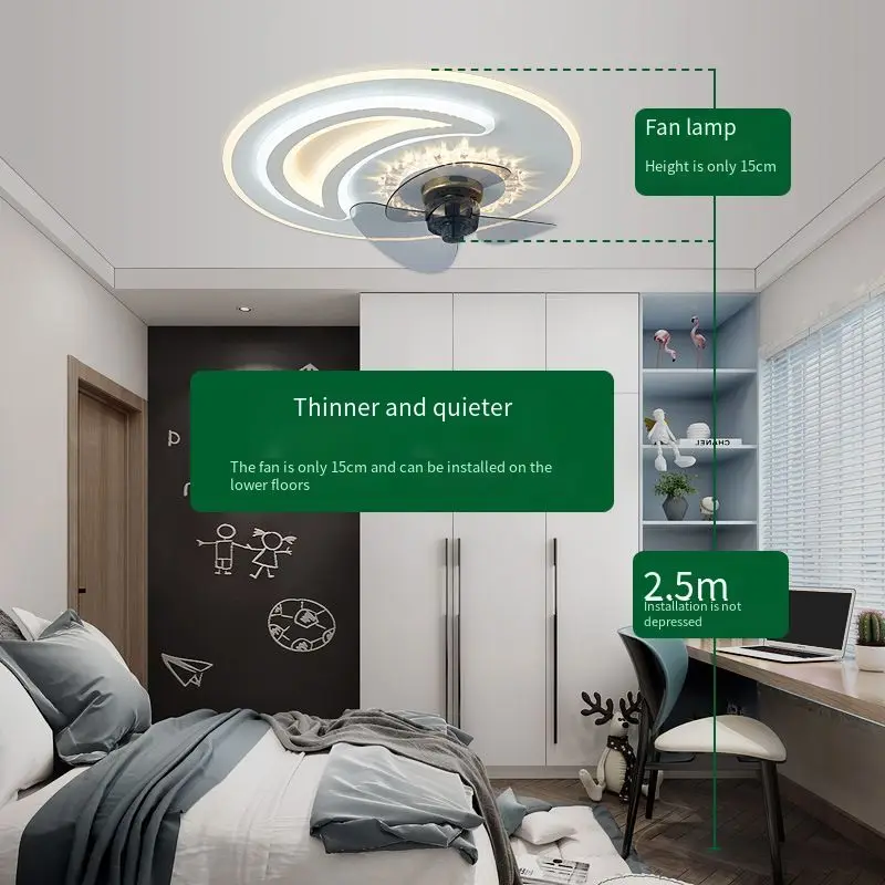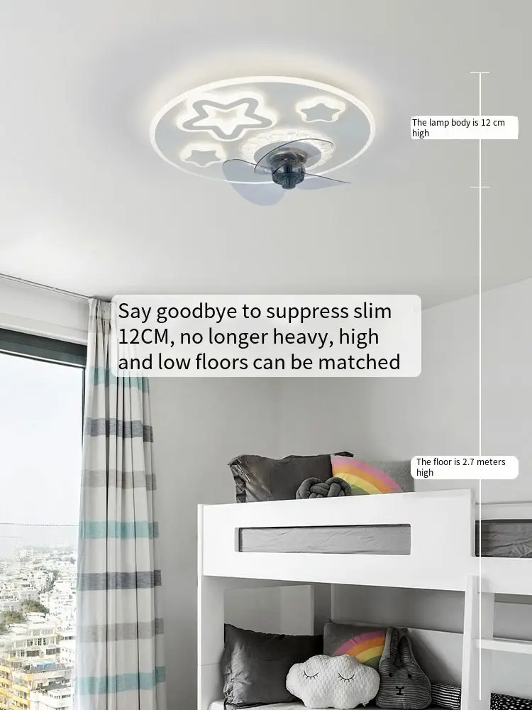 Nordic bedroom ceiling fan lamp simple electric fan chandelier mute children's room creative dining room study home integration