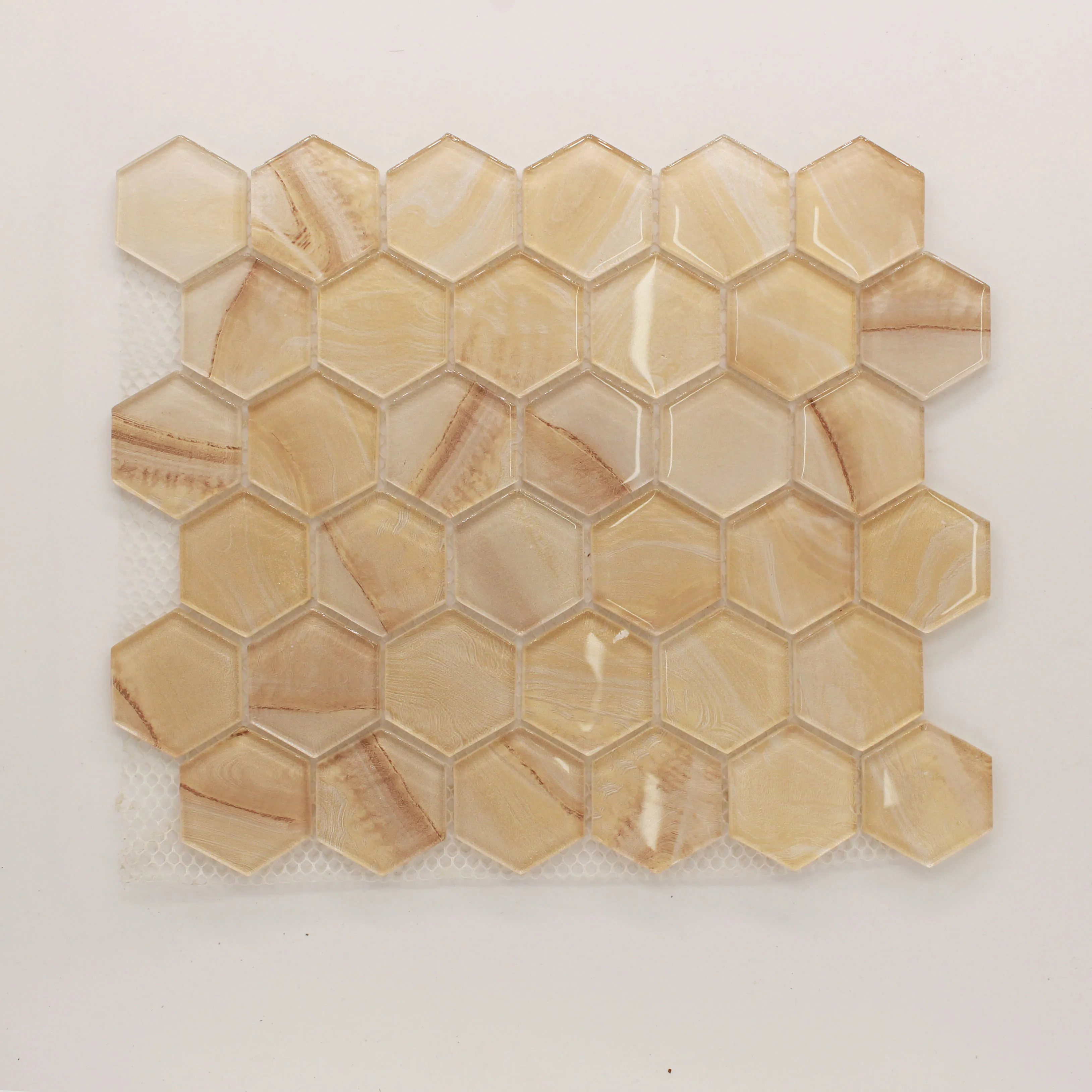 Mozek Kaca Kristal Pool Mosaic Swimming White Hexagon Room Decor Stickers Wall Floor Tiles Kitchen Backsplash Mosaic Glass Tile