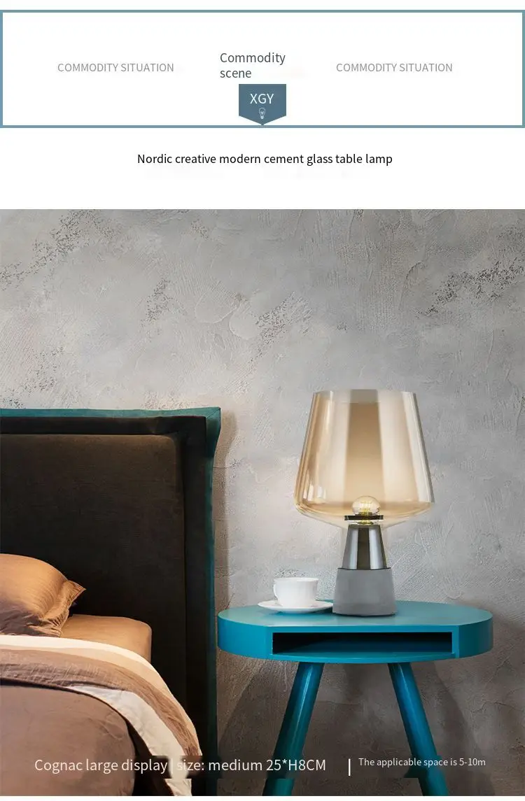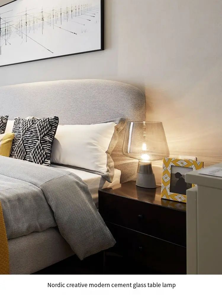 Postmodern minimalist cement glass LED table lamp beside lamp