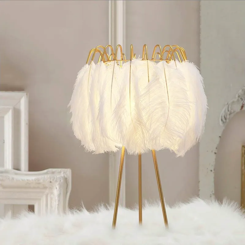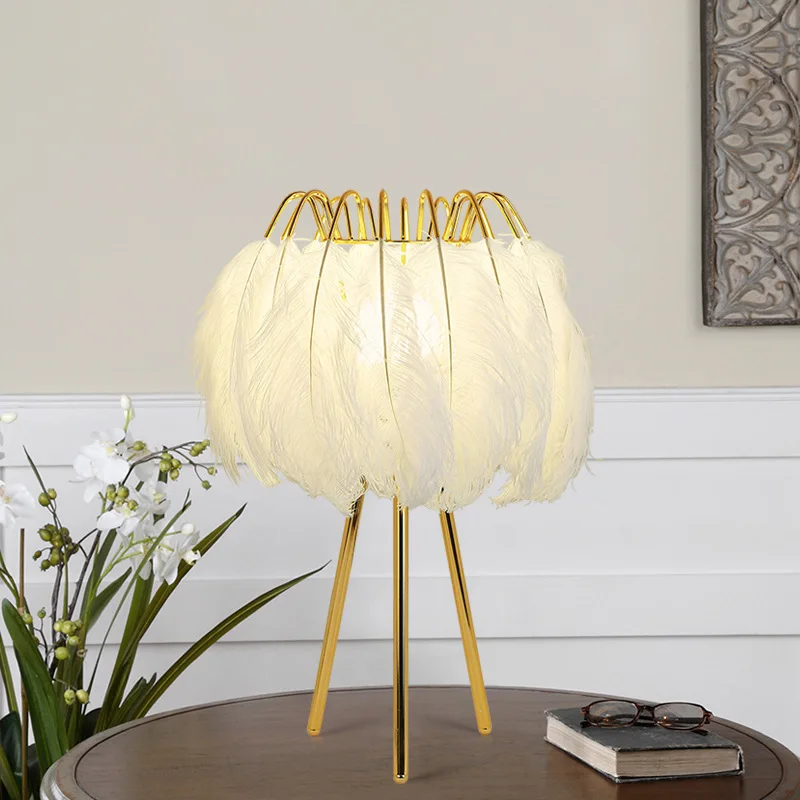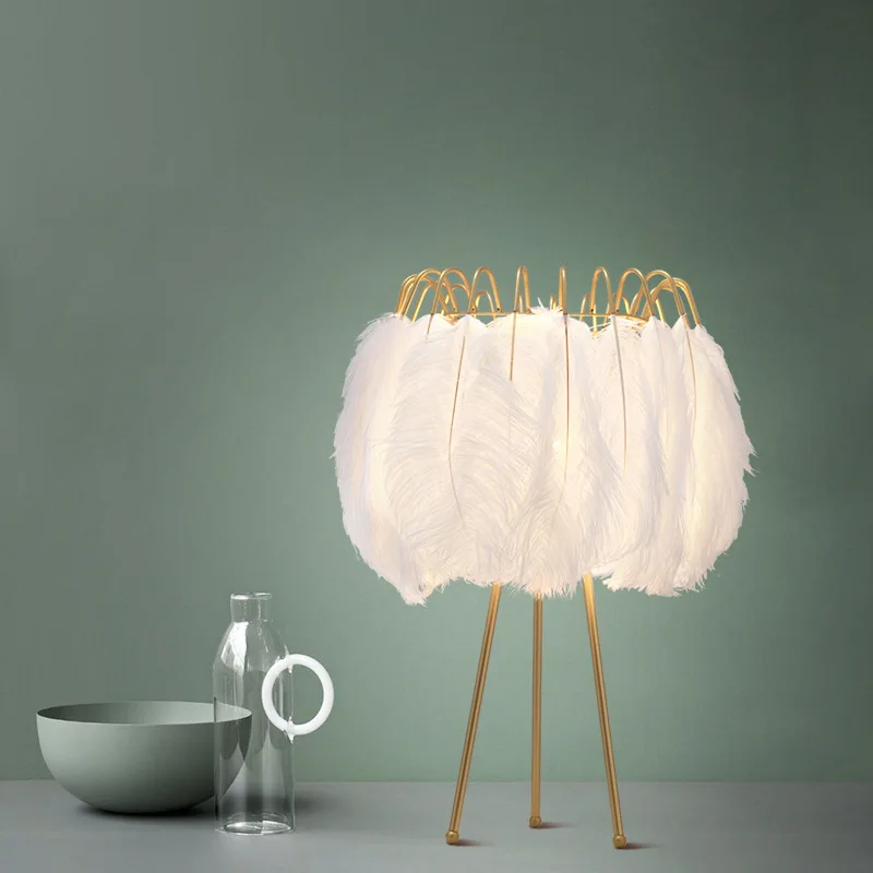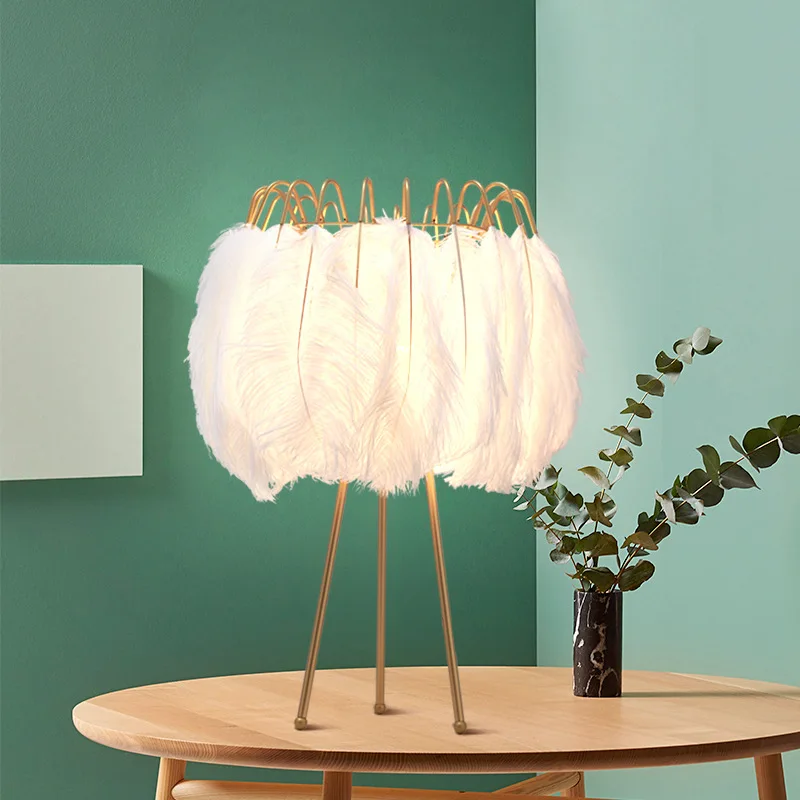Nordic led table light decorative feather table lamp bedroom bedside light romantic indoor lighting