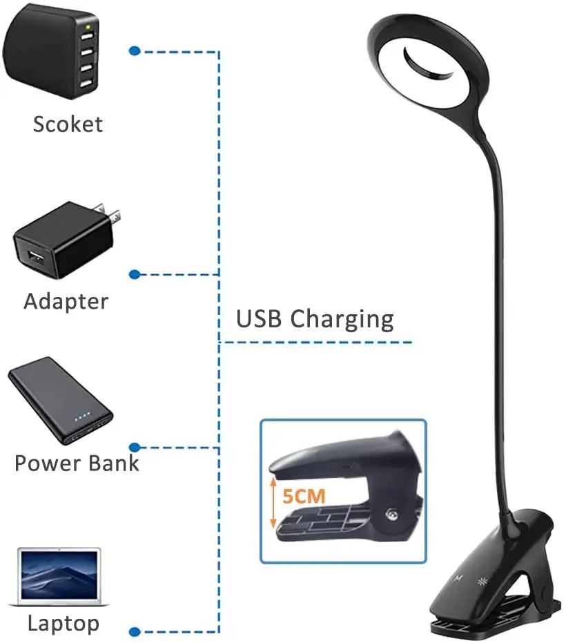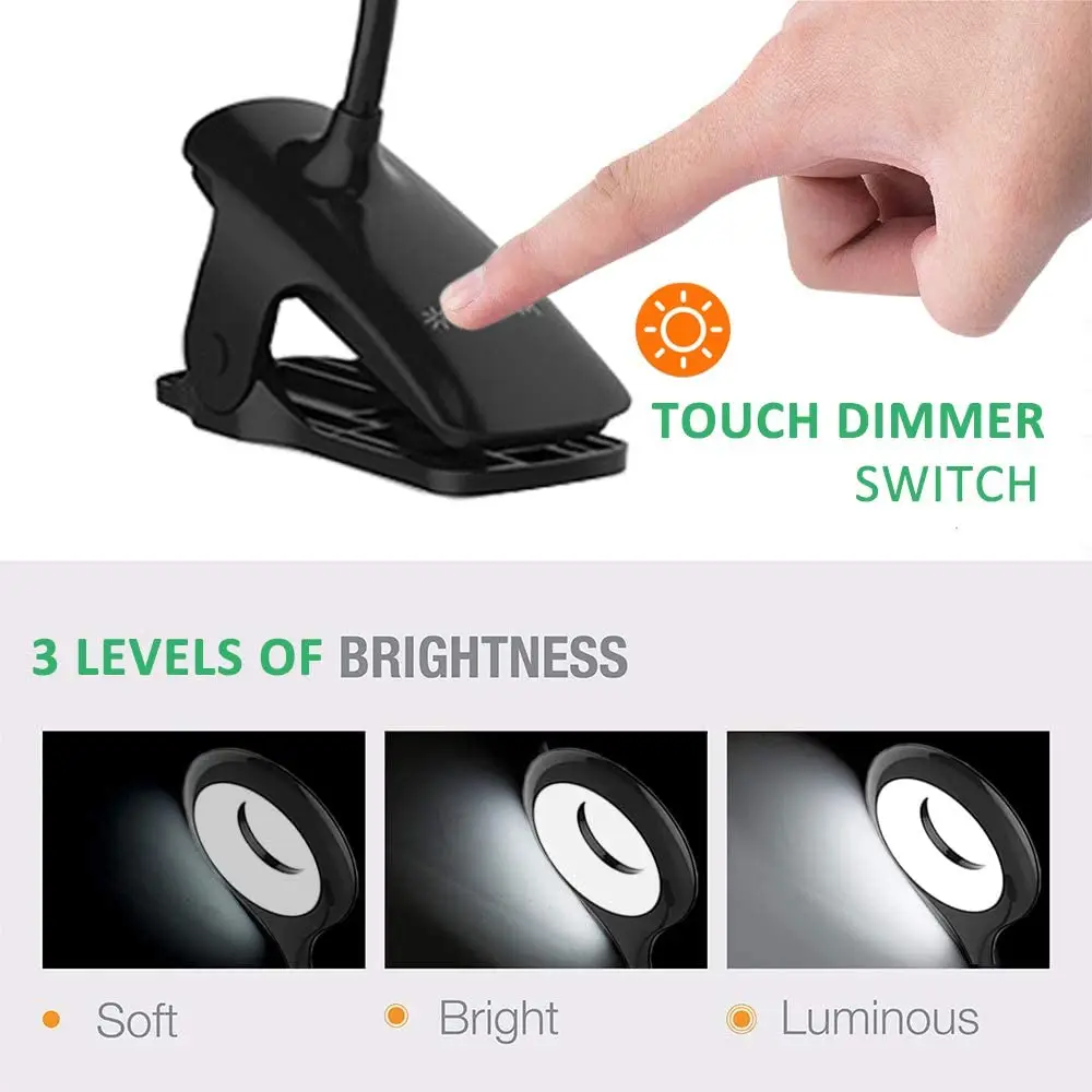 Wireless Battery Operated Rechargeable Reading Light Clip table lamp Kids Bedroom Desk Lamp Touch Control LED Table Lamp