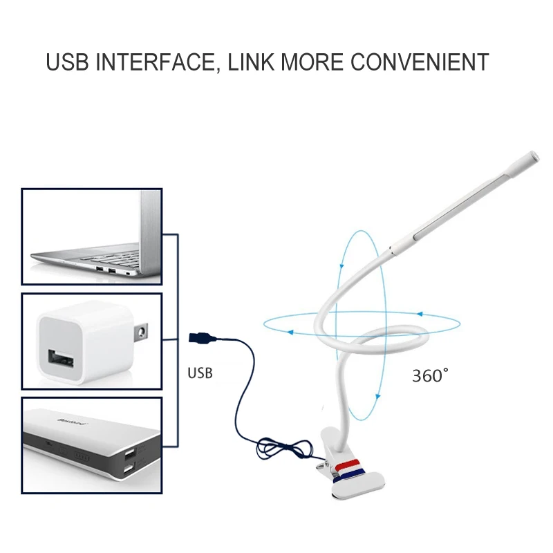 2020 Clip LED Lamp Book Reading Light Gooseneck USB Bedside Lamp With Clamp