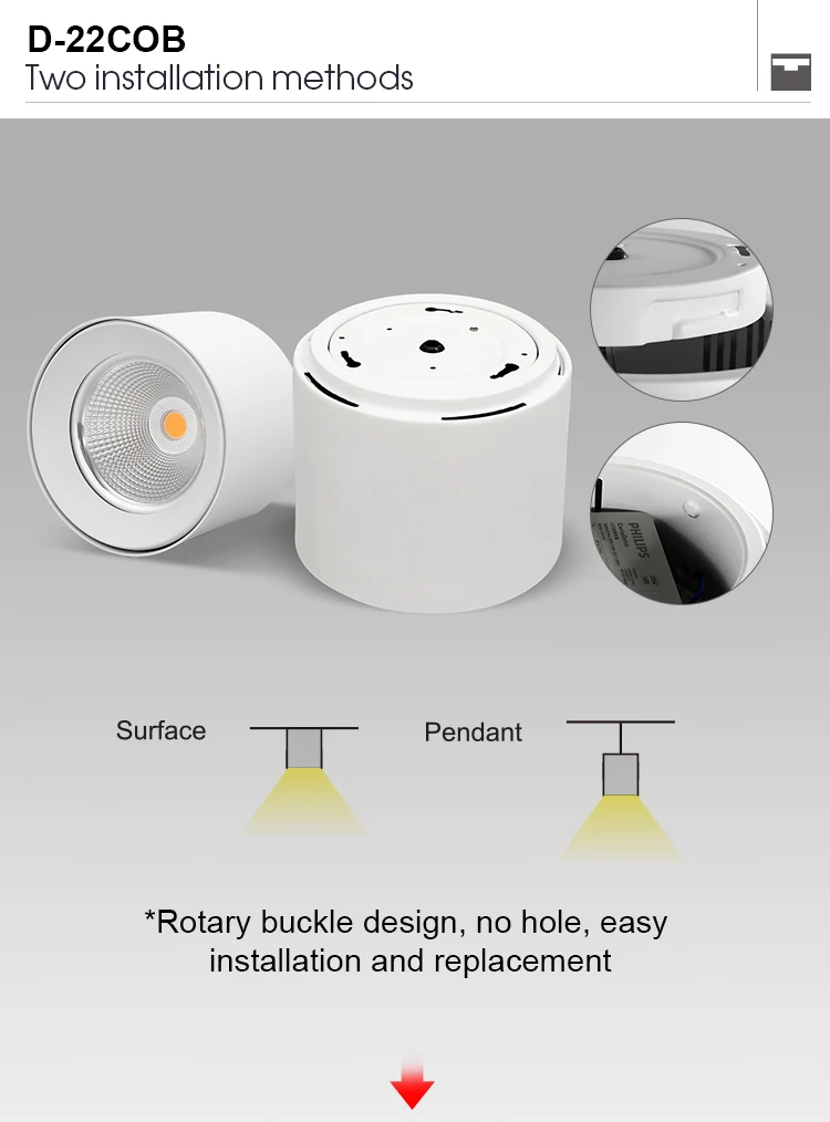 Home Lighting, Artwork & Interior Decoration Accessories Indoor Standard Lighting Downlights Zhongshan Dingguang Lighting Co., LTD Newest design COB chip 15/18/20/25w surface mounted led downlight Residential Suspended downlight etl