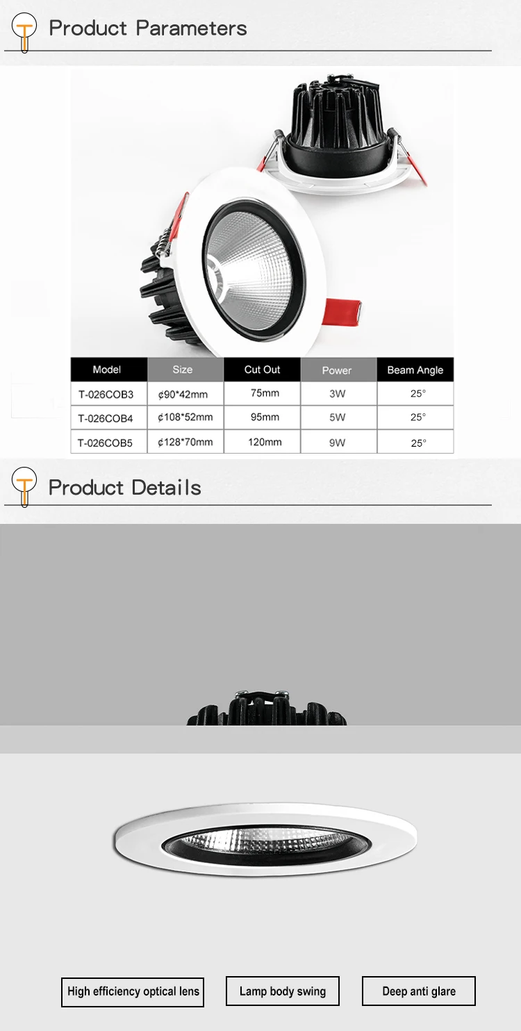 Home Lighting, Artwork & Interior Decoration Accessories Indoor Standard Lighting Downlights Zhongshan Dingguang Lighting Co., LTD Indoor cct cob led downlight modern style 3w 5w 9w recessed aluminum multiple downlight oem led down light