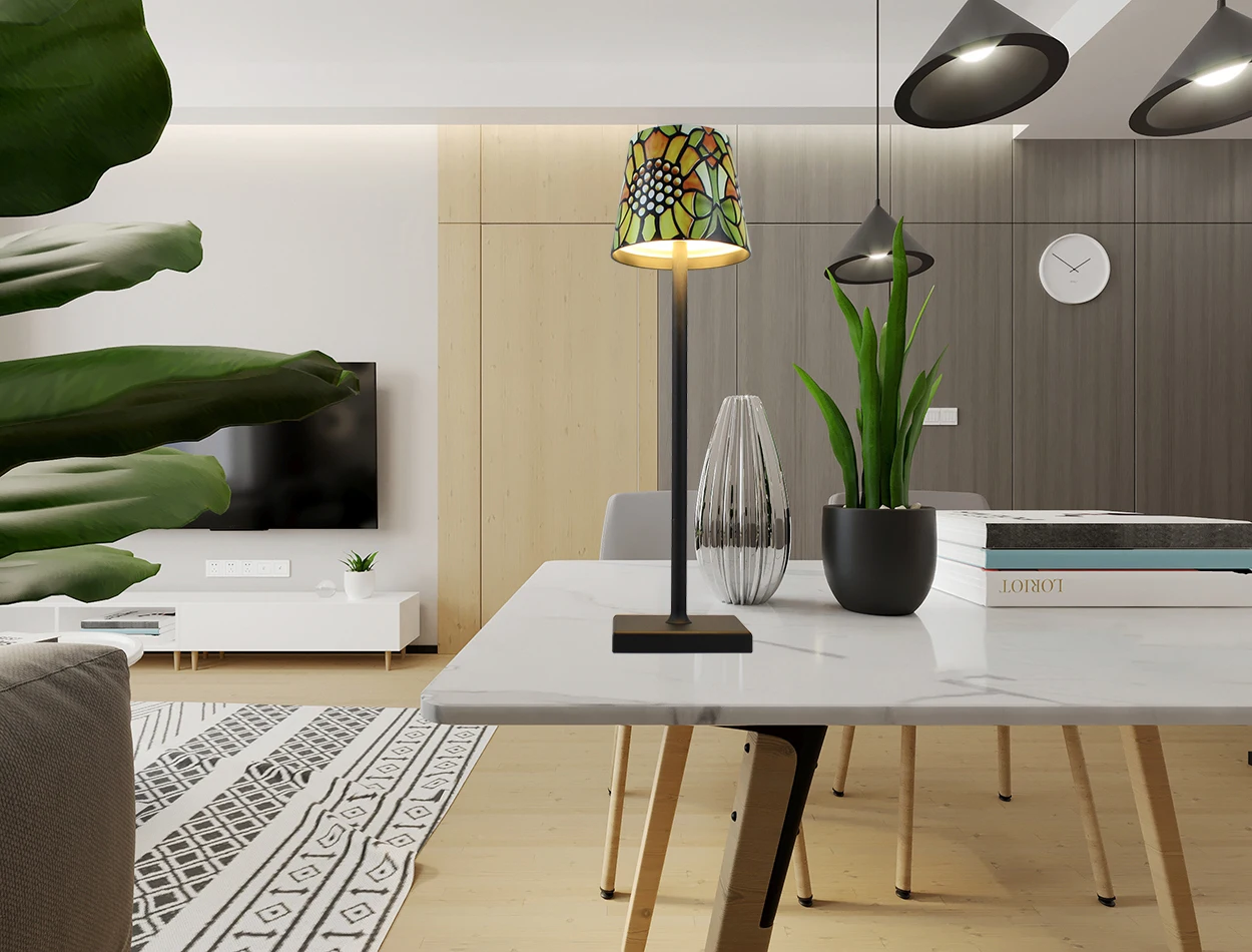 Waterproof IP54 LED Rechargeable Battery Outdoor Table Lamp American Style Hotel Decorative Tiffany Lamps