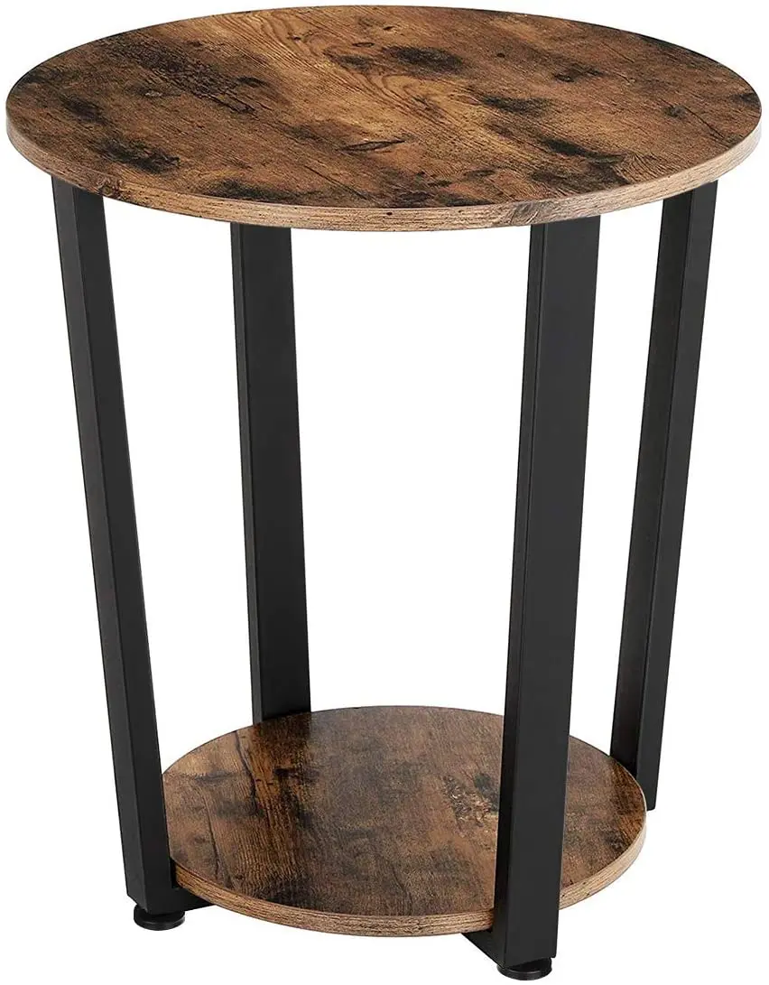 Home Movable Housing Furniture & Household Appliances Living Room Furniture Coffee Tables Dongguan Drm Technology Co., Ltd. DRM Industrial Round End Table, Wood Look Sofa Snack Table, 2-Tier Vintage Nightstands with Storage Shelf